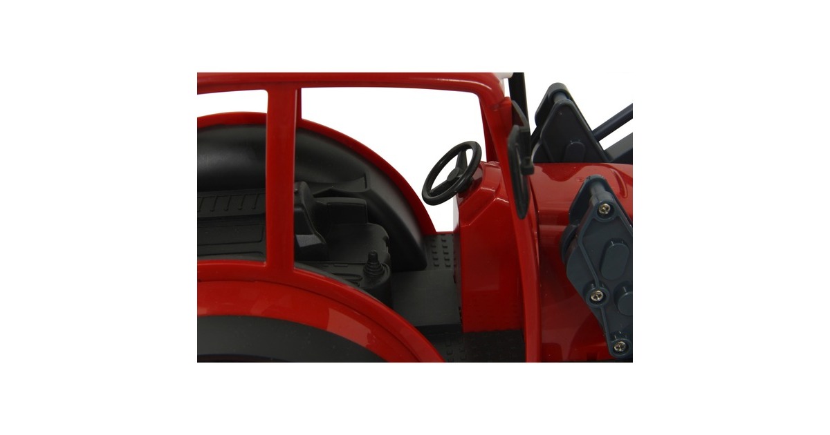 Frontlader heben/senken/abkippen, Realistischer Motorsound (abschaltbar), Rückfahrwarnsound, Blinker, Helle LEDs vorne, Standby-Modus, Demomodus, Anschlussbuchse für Anbaugeräte |