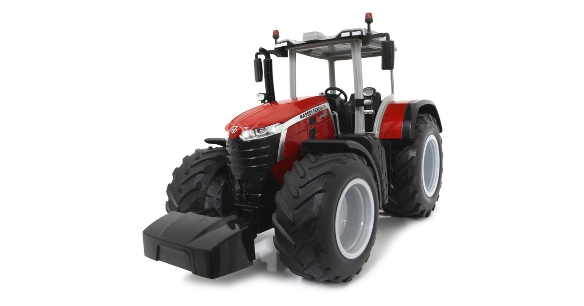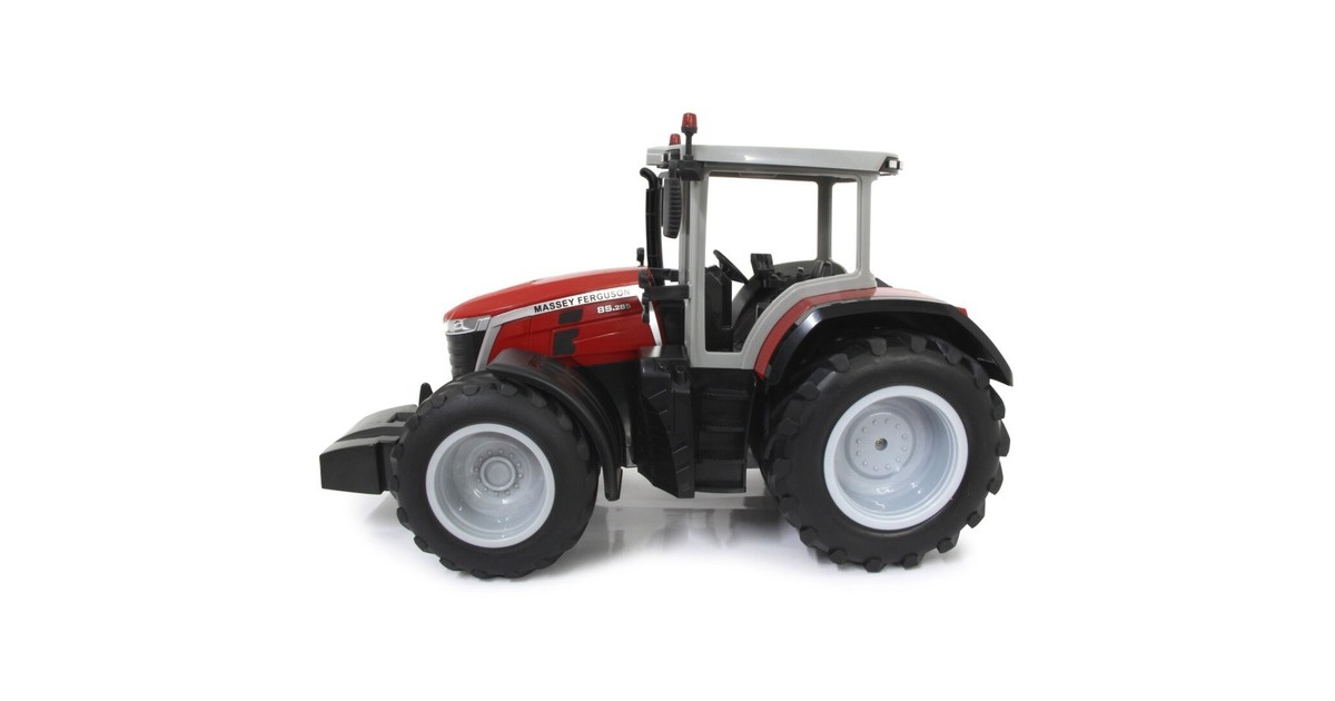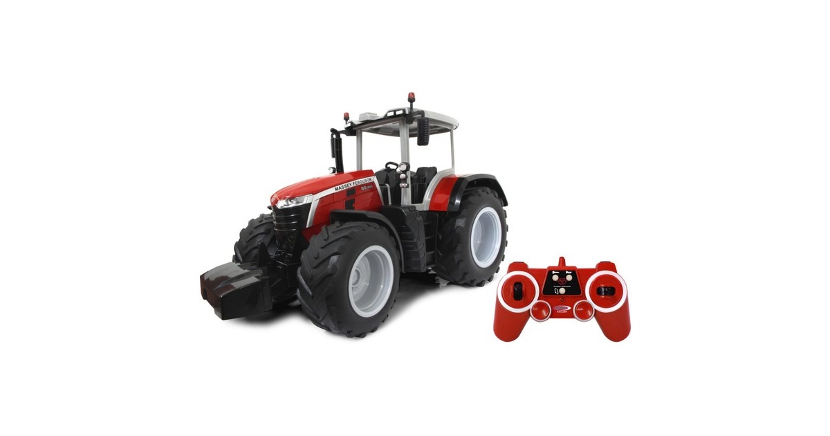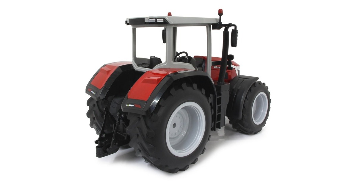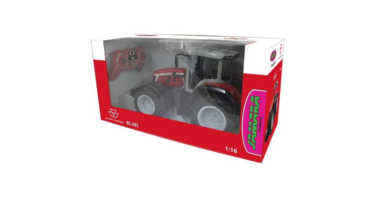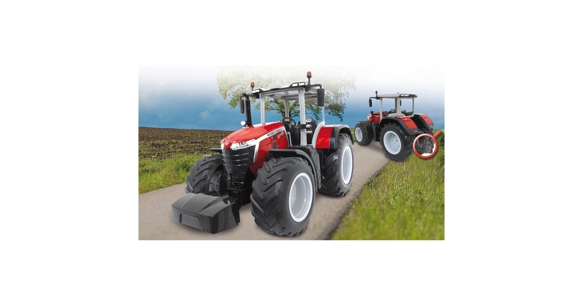 Der MF 8S ist ein Traktor der Extraklasse. Tractor of the Year, Farm Machine Winner und viele Design- und Innovations-Awards - im Original hat er viele Preise gewonnen. Jamara macht es möglich, dass dieser Traktor jetzt in jedem Kinderzimmer die Arbeit übernehmen kann. Der ferngesteuerte Traktor im Maßstab 1:16, ist offiziell lizenziert und verfügt über ein extra stabiles Chassis. Große Profilreifen, Blinker und Licht gehören ebenso dazu wie die ergonomische 2,4 GHz-Funkfernsteuerung für den Mehrspielerbetrieb. Alle Jamara-Anbaugeräte wie Kipper, Fasswagen und Schwader sind voll kompatibel und machen den Massey Ferguson zu einem tollen Spielerlebnis.