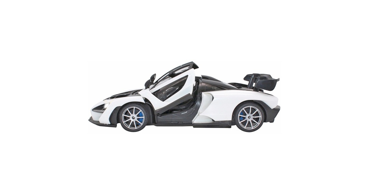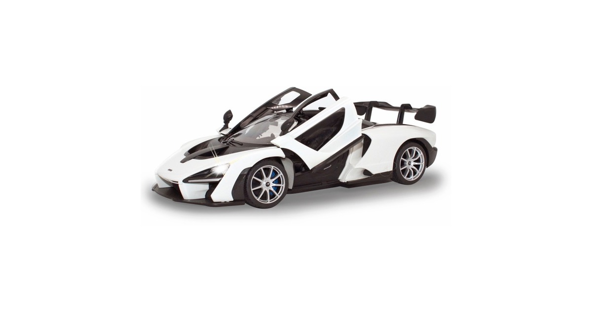 Wer hat nicht schon davon geträumt, einmal einen schönen sportlichen Wagen zu bewegen? Mit den offiziell lizenzierten Deluxe Car Modellen von Jamara kann man sich diesen Traum erfüllen und sich den sportlichen McLaren Senna im Maßstab 1:14 ins Wohnzimmer holen. Mit LED-Licht und nachgebildeten Details, die mit viel Liebe umgesetzt wurden, überzeugen die Fernlenkfahrzeuge auch durch die hochwertige Verarbeitung und den detailgetreuen Innenraum. Z.B. können die Türen manuell geöffnet werden. Im Lieferumfang ist eine 2,4-GHz-Fernsteuerung und eine Anleitung enthalten, eine Montage ist nicht erforderlich.Art.-Nr.: 1683613