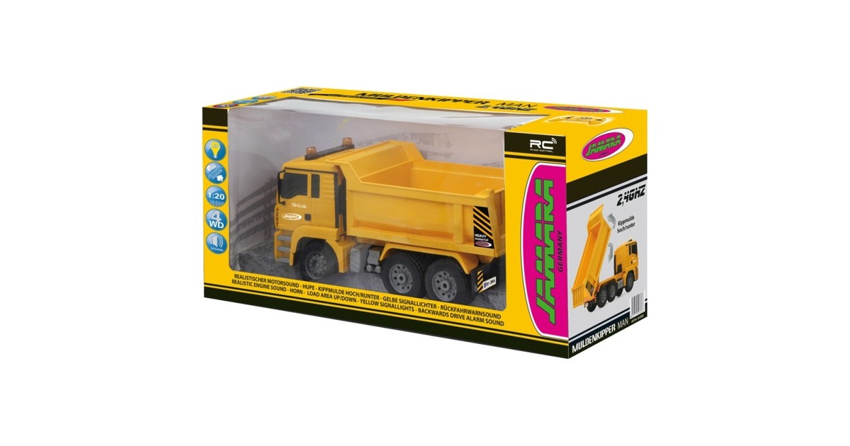 Mit dem Muldenkipper MAN im Maßstab 1:20 von Jamara kommt echtes Baustellen-Feeling auf. Die vielfältigen Steuerungsmöglichkeiten, die bewegbare Kippmulde sowie die Soundeffekte sorgen für eine realistische Darstellung des Fahrzeugs.Art.-Nr.: 1273978