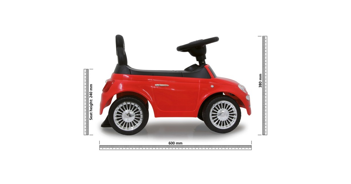 Für die Kleinsten in der Familie hat Jamara das ideale, kindgerechte Fahrzeug. Der Fiat 500 mit orginalgetreuer Optik bietet dank der wertigen und liebevoll gestalteten Karosserie und Kippschutz ein sicheres Fahrvergnügen. Das griffige Lenkrad verfügt über eine Hupe und verschiedene Sounds und ist somit das ideale Fahrzeug für die kleinsten Entdecker, gleichermaßen Indoor wie Outdoor. Der Rutscher ist dazu mit einer kleinen Rückenlehne sowie Schub- und Haltegriffen ausgestattet. Damit können auch die Kleinsten bequem geschoben werden. Der Sitz des Fiat 500 ist aufklappbar und es befindet sich ein Kofferraum unter der Sitzfläche. Art.-Nr.: 1552720