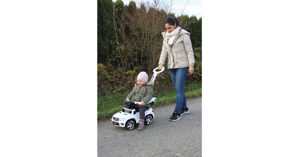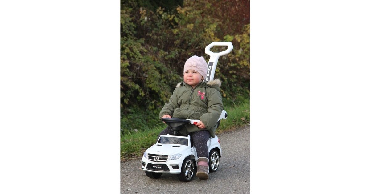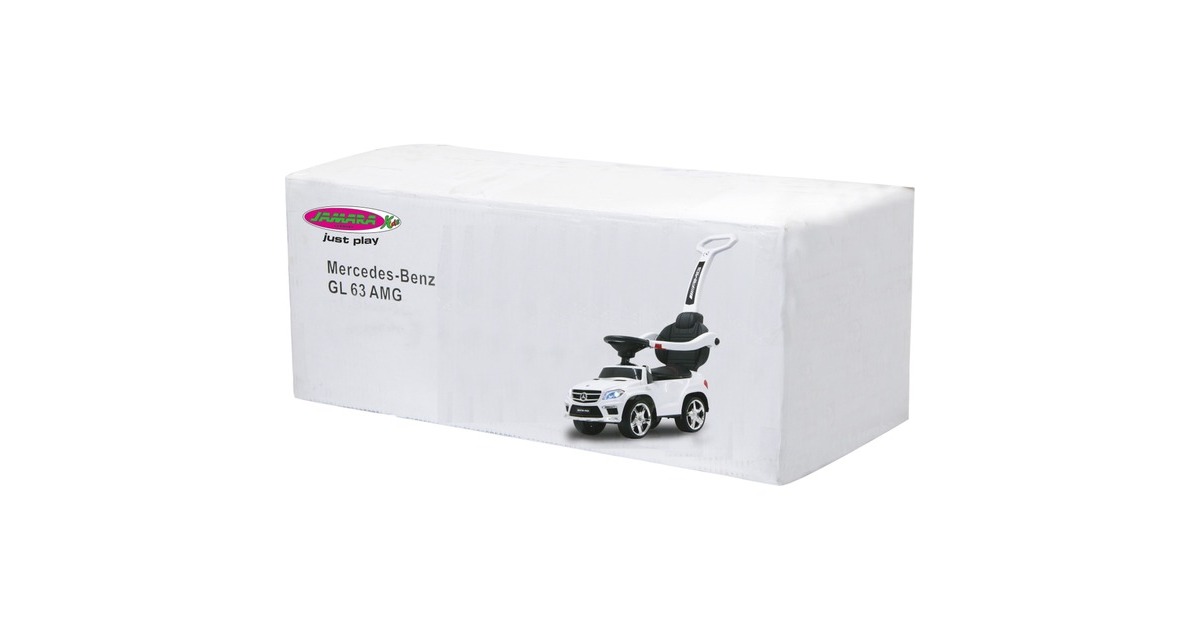 Für die Kleinsten in der Familie hat Jamara-Kids das ideale, kindgerechte Fahrzeug. Der offiziell lizenzierte Mercedes AMG GL63 bietet dank der stabilen und liebevoll gestalteten Karosserie ein sicheres Fahrvergnügen. Dafür sorgen auch die niedrige Sitzhöhe und der eigens konstruierte Kippschutz am hinteren Ende des Rutschautos. Mit dem griffigen Lenkrad mit Hupe und Sound, echten Scheinwerferattrappen und den dem Original nachempfundenen Kühlergrill und Felgen, ist der Mercedes-Rutscher das ideale Fahrzeug für die kleinsten Entdecker gleichermaßen Indoor wie Outdoor. In der Standard-Version hat der Rutscher eine kleine Rückenlehne. In der 2in1 Version gibt es noch einen Schub- und Haltegriff für den Rutscher. Damit können auch die Kleinsten bequem und dank des seitlichen Schutzbügels sicher geschoben werden.Art.-Nr.: 1349434