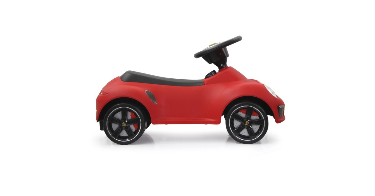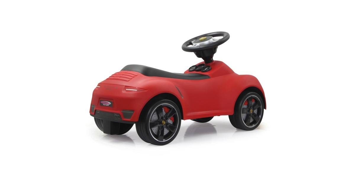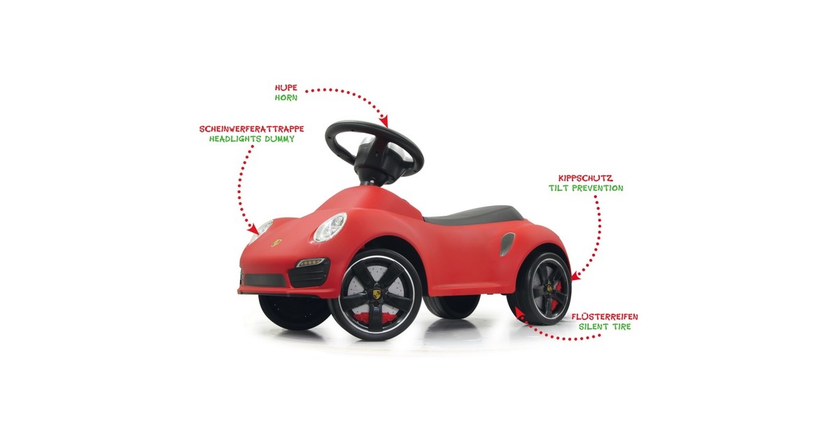 Vom Wohnzimmer in den Flur und wieder zurück. Der offiziell lizensierte Kids-Rutscher Porsche 911 von JAMARA ist ein einzigartiger Renner für die kleinsten ab 18 Monaten. Der Rutscher bietet dank der stabilen und abgerundeten Karosserie ein sicheres Fahrvergnügen. Hier trifft Spielspaß auf körperliche Herausforderung und fördert ganz nebenbei die motorischen Fähigkeiten der Kinder. Dafür sorgen auch die niedrige Sitzhöhe und der eigens konstruierte Kippschutz am Heck. Das griffige Porsche -Lenkrad mit Hupe, die Scheinwerferattrappen und den - dem Original nachempfundenen – Kühlergrill und Flüsterreifen mit Porsche-Felgen, machen aus dem Porsche das ideale Spaßgerät.Art.-Nr.: 1829091