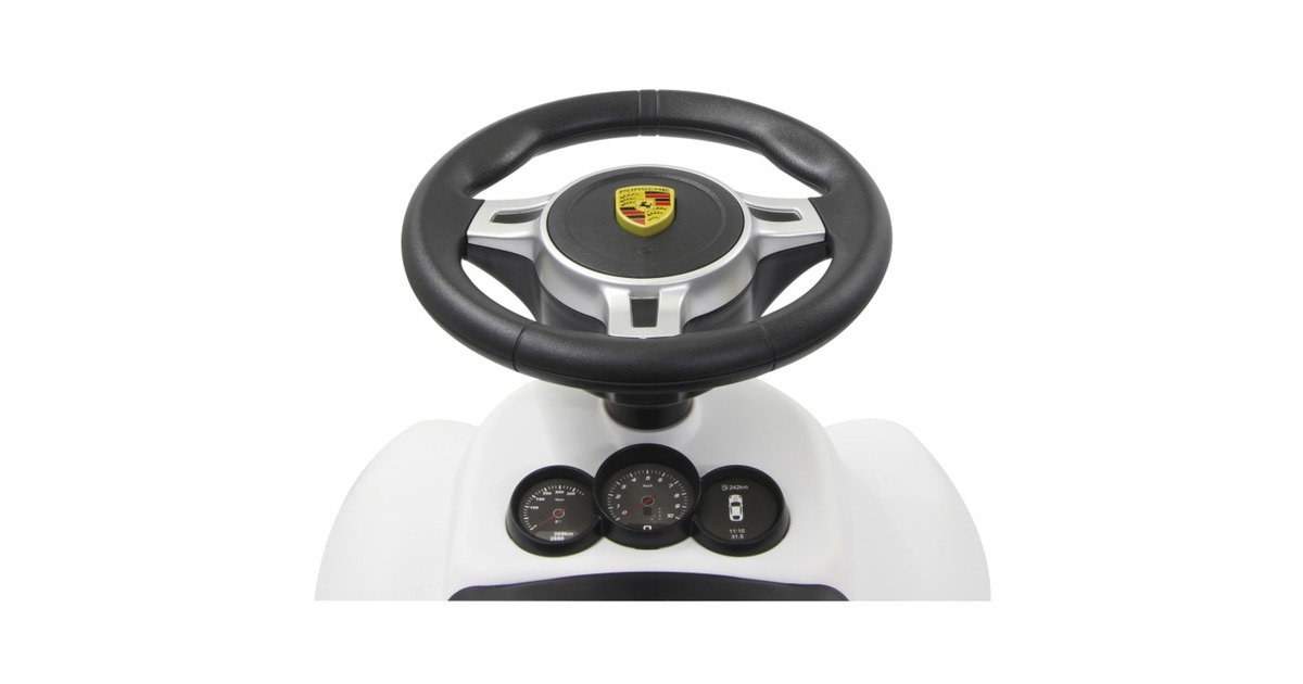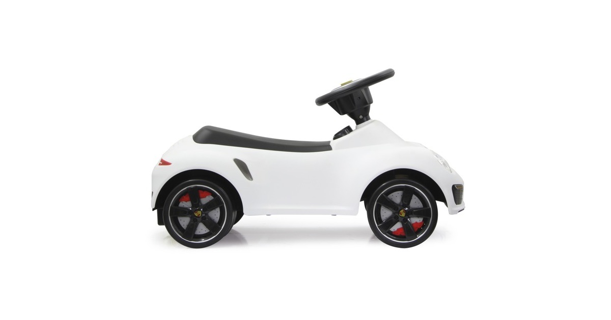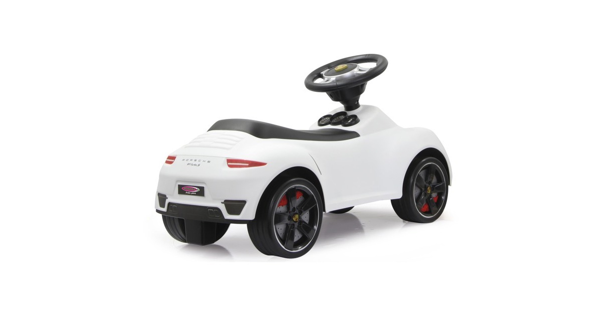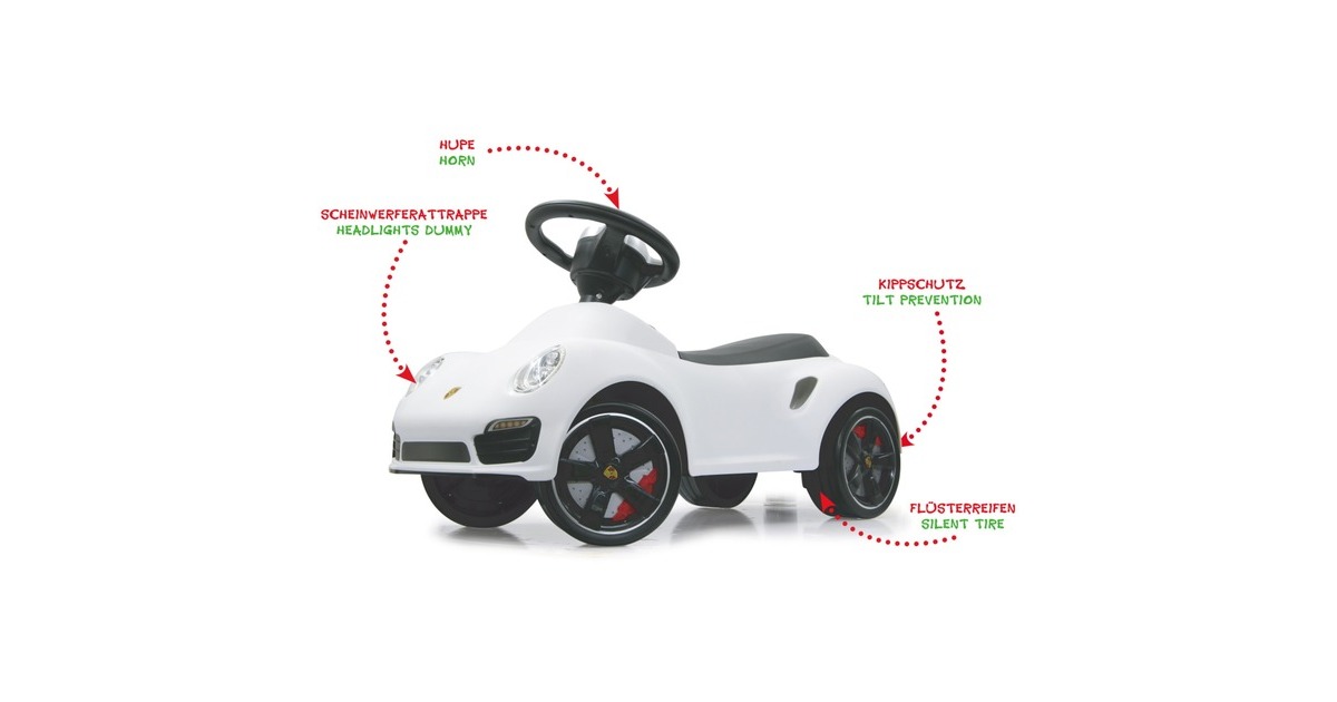 Vom Wohnzimmer in den Flur und wieder zurück. Der offiziell lizensierte Kids-Rutscher Porsche 911 von JAMARA ist ein einzigartiger Renner für die kleinsten ab 18 Monaten. Der Rutscher bietet dank der stabilen und abgerundeten Karosserie ein sicheres Fahrvergnügen. Hier trifft Spielspaß auf körperliche Herausforderung und fördert ganz nebenbei die motorischen Fähigkeiten der Kinder. Dafür sorgen auch die niedrige Sitzhöhe und der eigens konstruierte Kippschutz am Heck. Das griffige Porsche -Lenkrad mit Hupe, die Scheinwerferattrappen und den - dem Original nachempfundenen – Kühlergrill und Flüsterreifen mit Porsche-Felgen, machen aus dem Porsche das ideale Spaßgerät.Art.-Nr.: 1829094