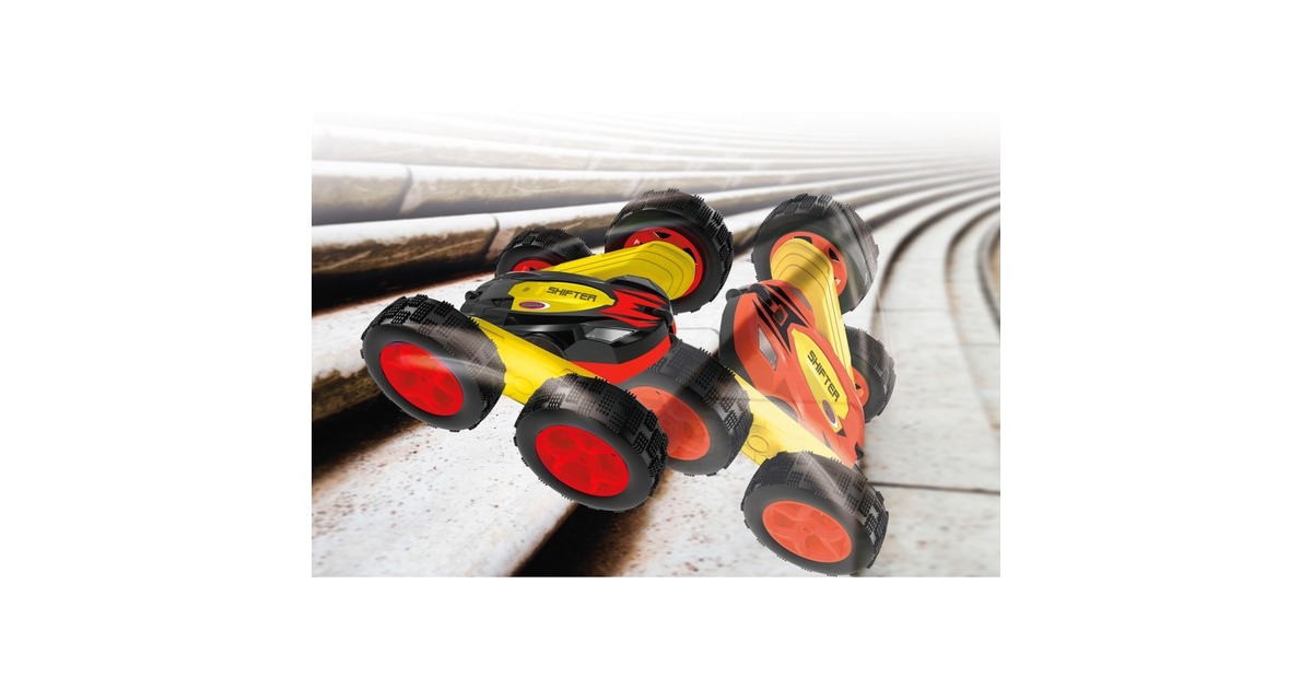 Das Jamara Shifter Stuntcar ist extrem überschlagresistent, vollzieht schnelle 360° Drehungen um die eigene Achse und kann auch auf dem Rücken fahren. Es überwindet fast jedes Hindernis und extreme Steigungen. Für diese Fähigkeit sorgt auch der Allradantrieb. Das hochwertige Shifter Stuntcar ist ausgestattet mit einer super weichen Gummibereifung und ist über die mitgelieferte 2,4-GHz-Fernsteuerung steuerbar.Art.-Nr.: 1444406