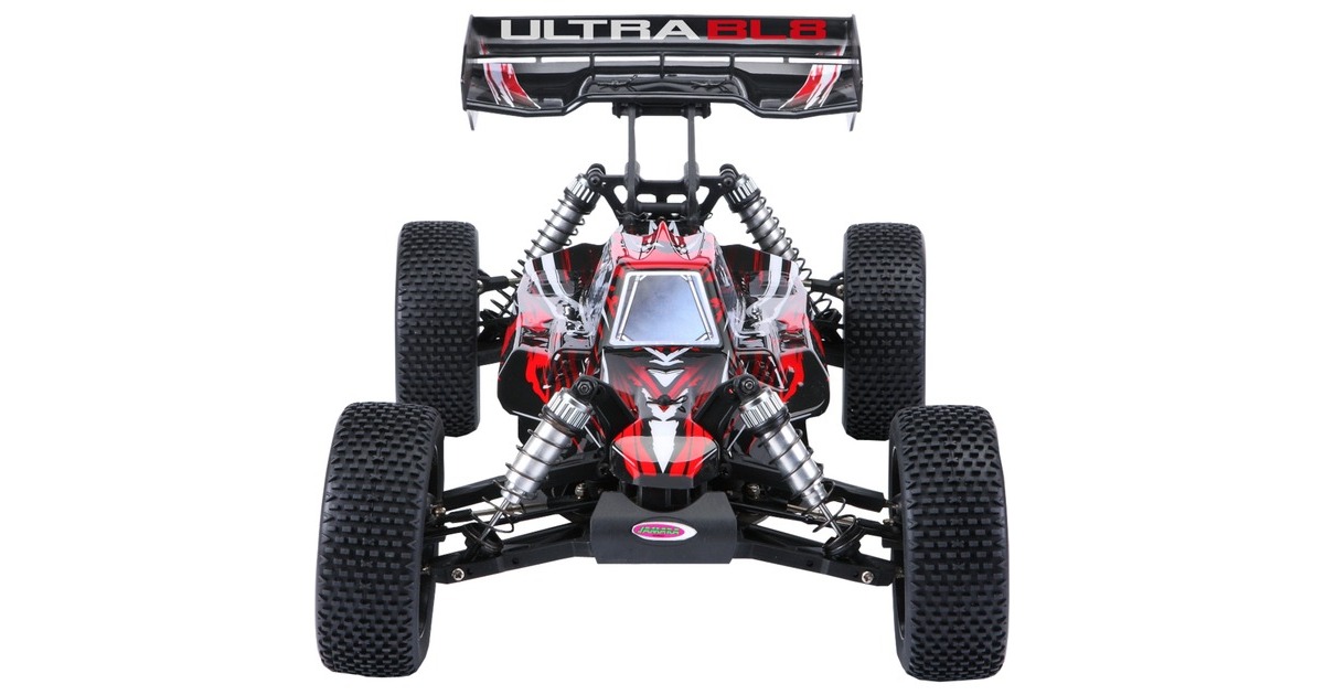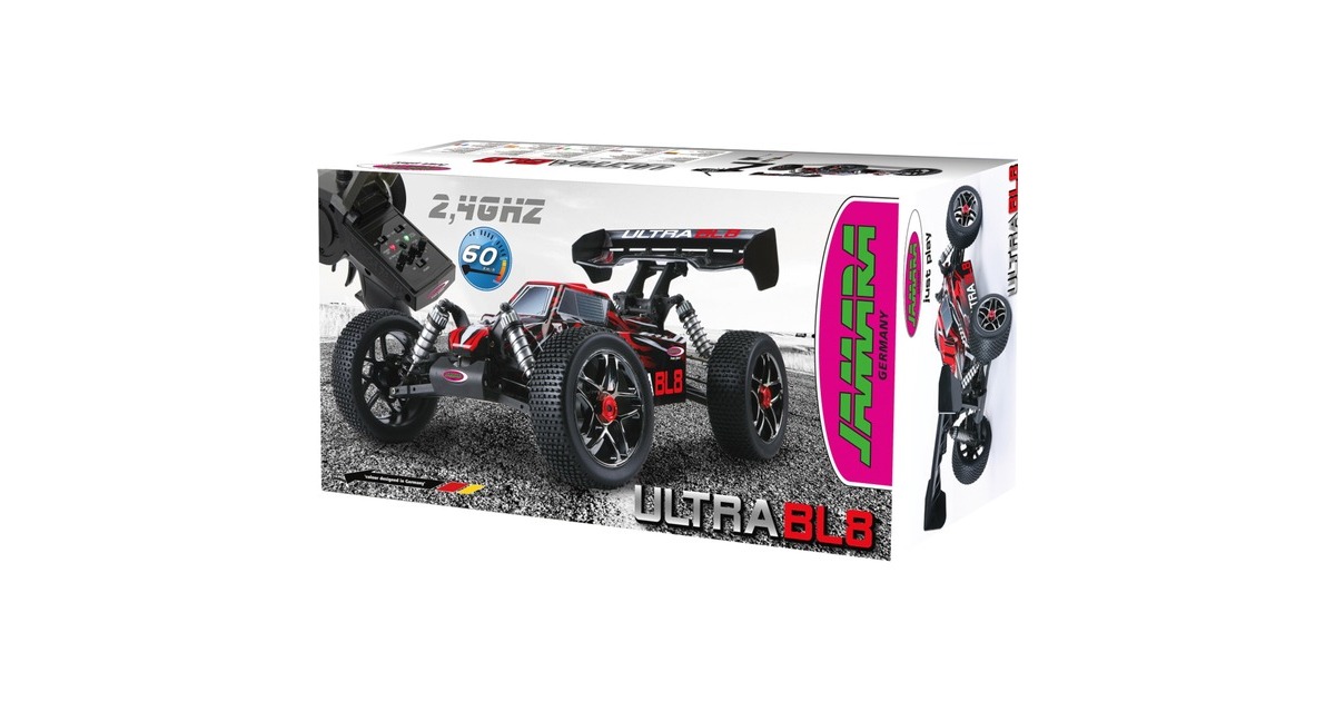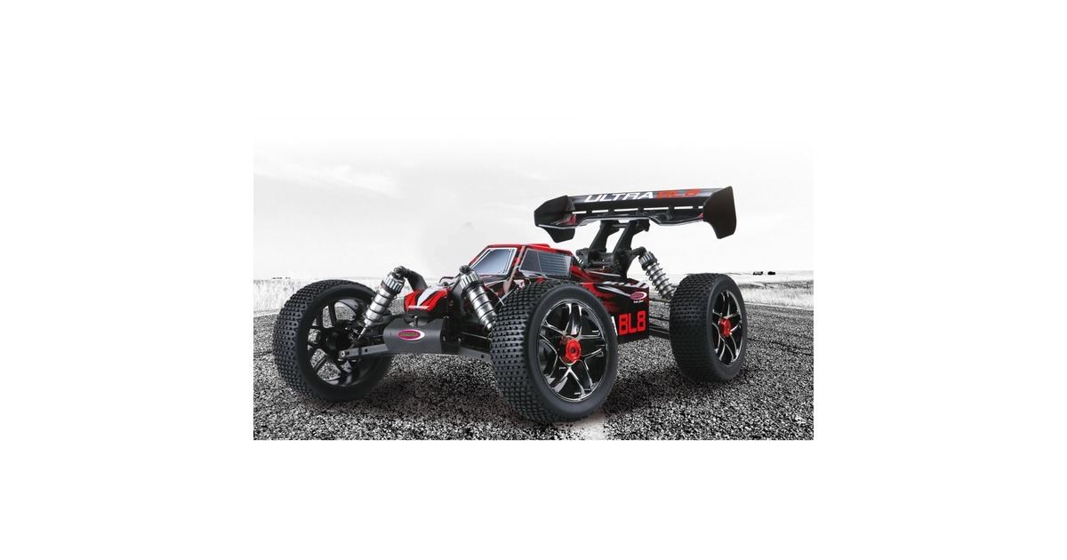 Breit, kraftvoll, schnell und Water Proof sind hervorstechenden Eigenschaften Ultra BL 8 LiPo im Maßstab 1:8. Der leistungsfähige Brushless-Elektroantrieb überträgt seine Kraft auf alle vier Räder. Die Antriebswellen aus Stahl und die gekapselte Getriebeeinheit stecken auch den täglichen Offroadeinsatz weg. Das harte Alu-Chassis, voll einstellbares Fahrwerk, die Öldruckstoßdämpfer und die große Bodenfreiheit zeichnen diesen Geländeboliden aus.Art.-Nr.: 1349443