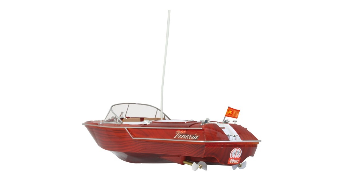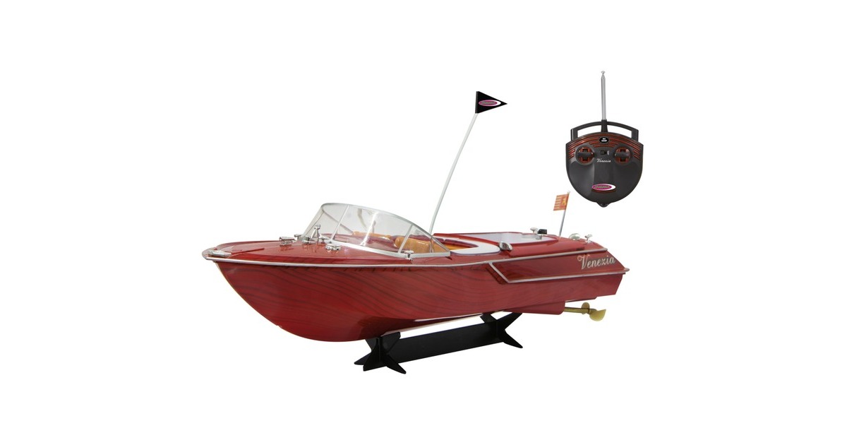 Einmal Kapitän einer schönen Motoryacht sein? Kein Problem. Mit der Venezia bekommen Hobbykapitäne genau das Richtige. Mit zwei kraftvollen Motoren kann die Venezia durch den heimischen Swimmingpool oder den Badesee pflügen. Eine aufwändig designte Nachbildung einer hochwertigen Holzoptik, eine Sicherheitsabschaltung und eine mit LED-beleuchtete Fernsteuerung macht die Venezia für Kleine und Große gleichermaßen interessant.Art.-Nr.: 1537642