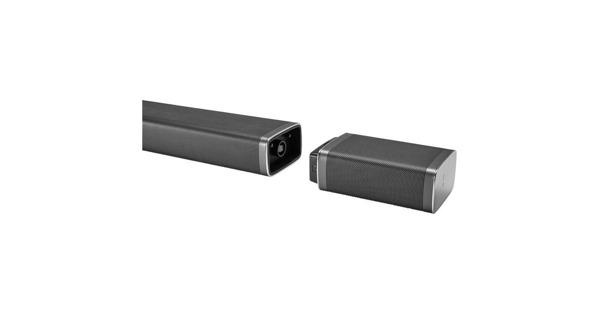 Dies ist eine einzelne Soundbar mit kabellosem Subwoofer und abnehmbaren Surround-Lautsprechern |