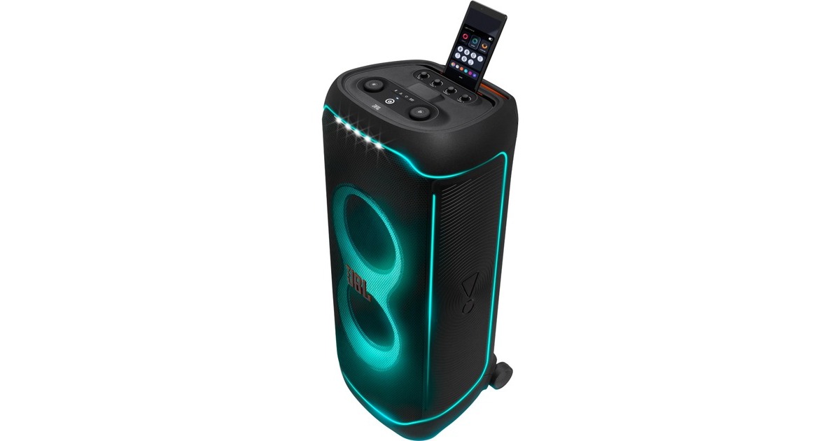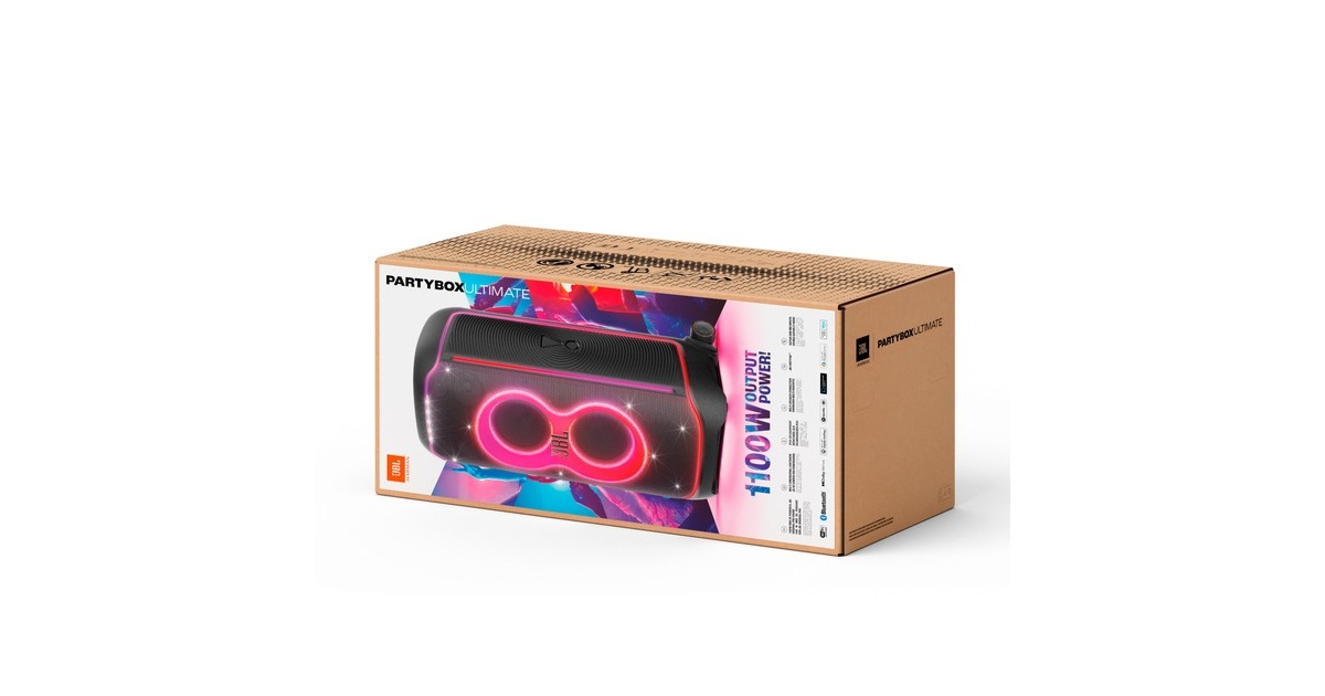 Die Partybox Ultimate von JBL füllt auch große Räume mit starken Sound. Neben kristallklarem Sound selbst bei höchster Lautstärke werden die Partygäste von einer Lichtshow mit faszinierenden Sternenlichtern, coolen Lichtspuren und Strobo-Effekten begeistert sein: Alles bewegt sich synchron zum Beat. Dank Bluetooth-Schnittstelle und WLAN-Unterstützung ist es ganz einfach, die Lieblings-Party-Playlist zu streamen. Auch mit Instrumenten kann abgerockt werden, denn die Partybox Ultimate verfügt über Anschlussmöglichkeiten für Mikrofon und Gitarre. Mit dem JBL PartyPad lassen sich DJ-ähnliche Effekte auslösen und Remixes erstellen. Doch das ist nicht alles, denn kabellose Kopplung und Multi-Lautsprecher-Verbindung über die JBL One App erlauben die einfache Erweiterung des Party-Erlebnisses. Die spritzwasserfeste JBL PartyBox Ultimate stimmt sich selbständig ab - so klingt sie immer optimal.Art.-Nr.: 100007504