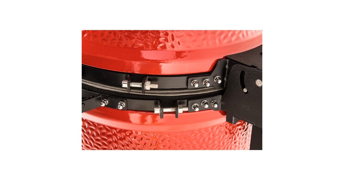 Komplett neue, doppelt so dicke Dichtung aus Fiberglas und Edelstahl-Schließe für eine umfassende Hochtemperatur-Versiegelung. |