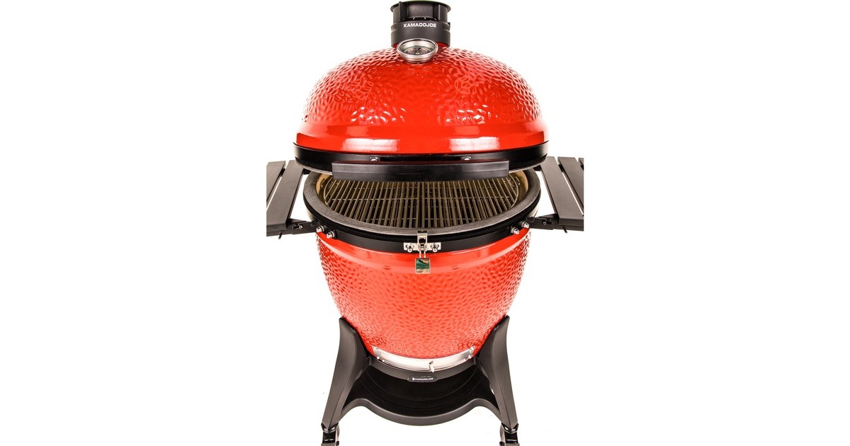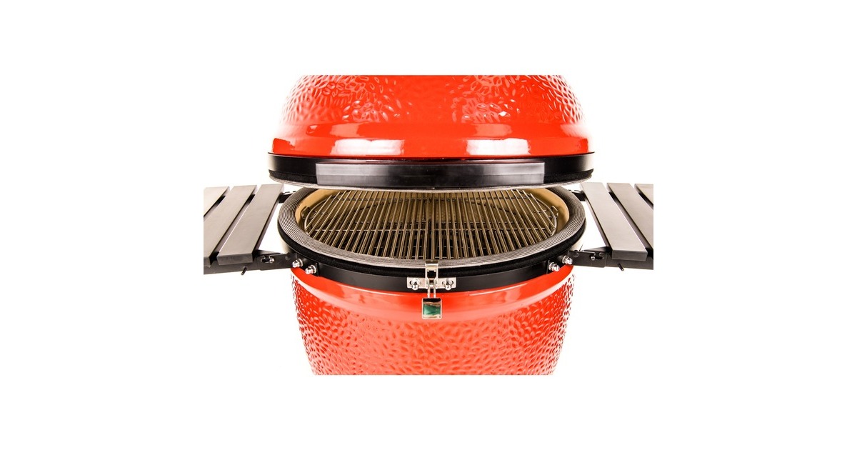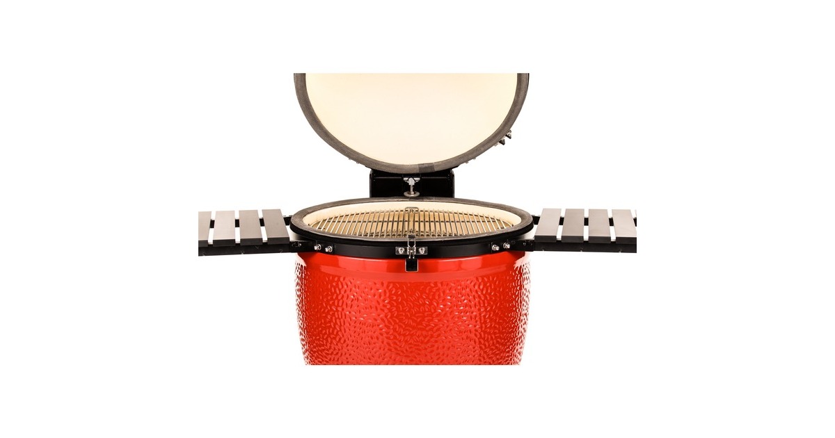 Der dickwandige Holzkohlegrill Kamado Joe Big Joe III mit hitzebeständigem Korpus aus Keramik fängt bei jeder Temperatur den Rauchgeschmack und die Feuchtigkeit ein. Er enthält die jüngste Innovation, den revolutionären SloRoller, einen hyperbolischen Räucherkammereinsatz. Dabei wird die leistungsstarke Technik der Zyklon-Luftströme zur Hitze- und Rauchregulierung genutzt: Der SloRoller-Einsatz wurde speziell dazu entwickelt, den Geschmack und die Textur der Zutaten beim langsamen Garen bei bis zu 260ºC zu perfektionieren. Zum Braten oder zum Grillen bei höheren Temperaturen lässt er sich einfach herausnehmen und durch die Hitzedeflektoren ersetzen. Der bruchsichere Einsatz AMP FIREBOX (Advanced Multi-Panel Feuerbox) mit dem patentierten, ineinandergreifenden Design ermöglicht eine optimale Belüftung. Als althergebrachter Grill im asiatischen Stil sorgt der dickwandige Kamado Big Joe III für Fleisch-, Fisch- und Gemüsegerichte mit ausgesprochenem Räucheraroma. Bei dieser seit Jahrhunderten nahezu unveränderten Technik strömt die Luft durch den Keramikkorpus des Grills und entweicht durch die Deckelöffnungen, die Holzkohle erzeugt dabei Rauch und Hitze. Das komplett aus Aluminium gefertigte, rost- und regensichere Ventil Top Vent ermöglicht eine präzise Luftmengen-Steuerung. Unter dem leicht zu öffnenden Deckel verbirgt sich eine große, aus Edelstahl in Qualität 304 gefertigte Brat- und Grillfläche mit Platz für 10-12 Filets oder Hähnchenbrüste. Zur Standardausrüstung gehören außerdem das flexible Kochsystem Divide & Conquer, ein hochbelastbarer gusseiserner Rollwagen, ein Schieberegler zur Feineinstellung der Lüftung und ein praktischer Aschenauszug, der sich leicht entnehmen und reinigen lässt. Das patentierte, flexible Kochsystem Divide & Conquer verwandelt den herkömmlichen Grillrost in den absoluten Alleskönner unter den Kochgeräten. Revolutionär am Kochsystem Divide & Conquer sind die unterschiedlichen Ebenen und die halben Grillflächen: So wird Platz geschaffen, um zeitgleich verschiedene Zutaten bei unterschiedlichen Temperaturen individuell zubereiten zu können. Die auf mehrere Ebenen verteilten Auflagen machen Schluss mit dem Grillen in Etappen und mit Platzmangel auf dem Rost. Dank der Stufenroste verdoppelt sich die Grillfläche, und Fleisch, Gemüse oder sonstige Beilagen lassen sich einfach gleichzeitig zubereiten. Mit dem halbmondförmigen Hitzedeflektor kann man im Kamado Joe Big Joe III unterschiedliche Hitzezonen erzeugen. Durch diesen Aufbau kann die Hitze teils indirekt, teils als offenes Feuer genutzt werden.Art.-Nr.: 1687915