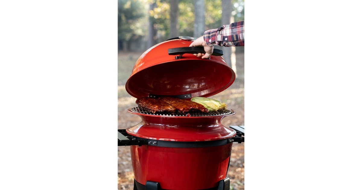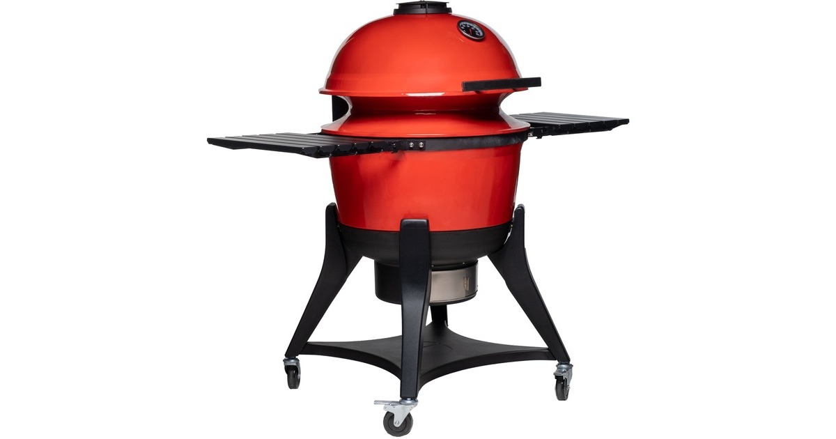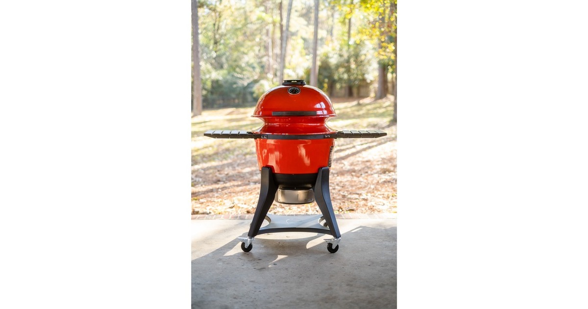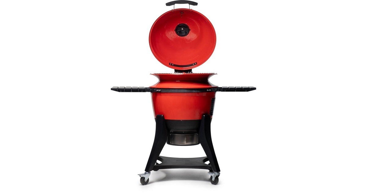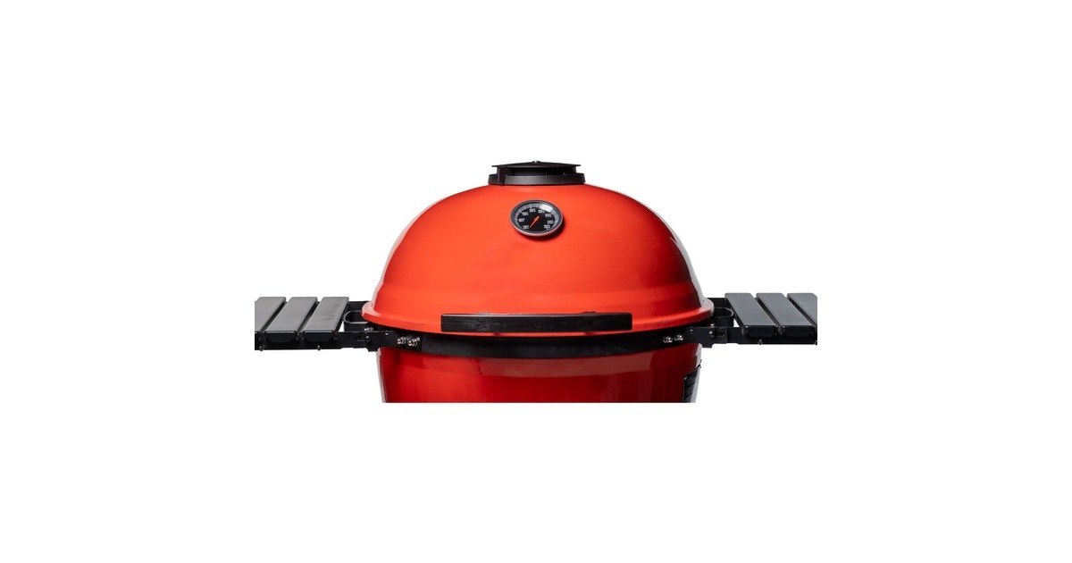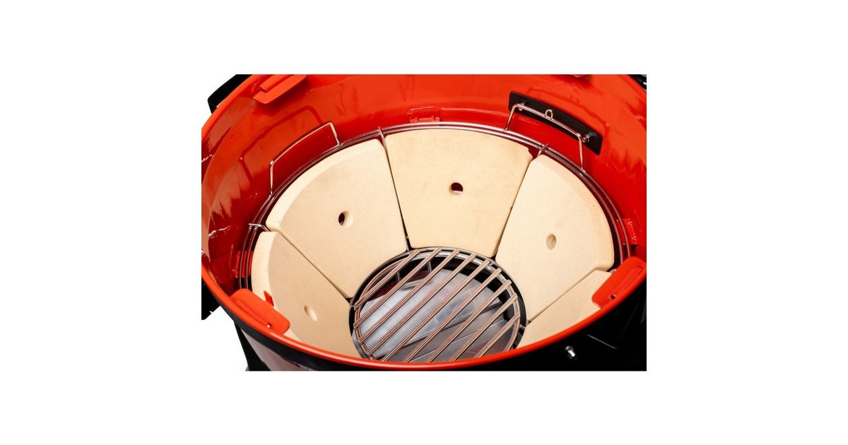 Der Kettle Joe von Kamado Joe ist ein 57cm Kugelgrill mit einzigartigen Keramikgrill-Features, welche die Hitzespeicherung, die Effizienz der Holzkohle sowie die Smoker-Fähigkeiten deutlich verbessern. Er besteht, anders als die üblichen Keramikgrills von Kamado Joe, aus einer porzellanemaillierten Stahlkugel und kann durch keramische Elemente im Innenraum ergänzt werden. So werden die besonderen Vorteile der Keramik ideal genutzt. Im Innenbereich des Kessels befindet sich ein Edelstahl-Feuerkorb in dem die sechs Keramikelemente eingesetzt werden. Durch die Verwendung der Keramiksteine kann der Kettle Joe die Hitze besonders gleichmäßig und langanhaltend speichern und abgeben.Das patentierte, flexible 2-Zonen Divide & Conquer System verwandelt den herkömmlichen Grillrost in einen Alleskönner und erlaubt es, das Grillgut bei unterschiedlichen Temperaturen zuzubereiten. Der Kettle Joe hat Rosthalterungen im Kessel, um die geteilten Roste in unterschiedlichen Höhen auflegen zu können. Im Lieferumfang ist außerdem der revolutionäre Räuchereinsatz SloRoller enthalten, der sich die Kraft der zyklischen Airflow-Technologie zunutze macht, um Temperaturen zu kontrollieren und Rauch perfekt zu verteilen. Über das Scharnier kann man einfach die Deckelhöhe anpassen und mit wenigen Handgriffen den Räuchereinsatz SloRoller einsetzen. Durch die Erhöhung der Luftströmungsgeschwindigkeit und die Änderung des Innendrucks erzeugt das aerodynamische Design des SloRoller rollende, umlaufende Hitze- und Rauchwellen. Das Ergebnis ist ein innovativer Rauchzyklus, der Lebensmittel in Holzaromawolken einhüllt und so 20-mal mehr Rauchkontakt bietet als der herkömmliche einzelne Rauchstrom.Art.-Nr.: 1687917