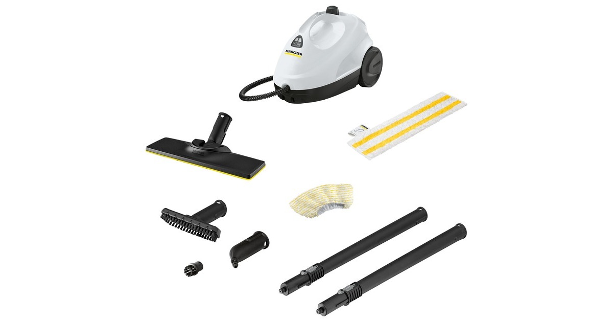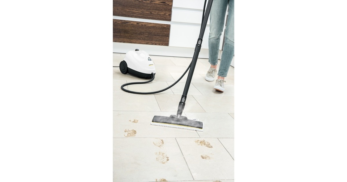 Der einfach und intuitiv bedienbare Einstiegs-Dampfreiniger Kärcher SC 2 EasyFix reinigt völlig ohne Chemie mit einem kraftvollen Dampfausstoß von 3,2 bar und einer Flächenleistung von 75m². Die Bodendüse EasyFix mit flexiblem Gelenk ermöglicht höchste Ergonomie und sorgt dank der Lamellentechnologie für perfekte Reinigungsergebnisse. Diverse Düsen ermöglichen eine bedarfsgerechte Reinigung verschiedenster Oberflächen und mit der 2-stufigen Dampfregulierung am Handgriff kann die Dampfintensität an Oberfläche und Verschmutzungsgrad angepasst werden. Bei gründlicher Reinigung mit dem Kärcher Dampfreiniger SC 2 EasyFix werden bis zu 99,99% der Coronaviren und 99,99% aller haushaltsüblichen Bakterien auf Hartflächen beseitigt. Durch sachgemäßen Einsatz des vielfältigen Zubehörs werden Fliesen, Kochfelder, Dunstabzugshaube und sogar kleinste Ritzen hygienisch sauber. Selbst hartnäckige Verschmutzungen werden zuverlässig beseitigt. Eine praktische Zubehöraufbewahrung am Gerät sowie die Parkposition für die Bodendüse sind nützliche Details für eine noch komfortablere Dampfreinigung. Im Bereich Sicherheit überzeugt der SC 2 EasyFix mit einer Kindersicherung und einem Sicherheitsventil.Art.-Nr.: 100042125
