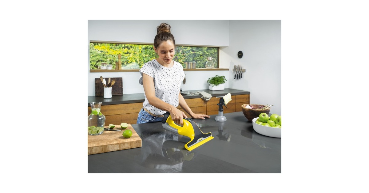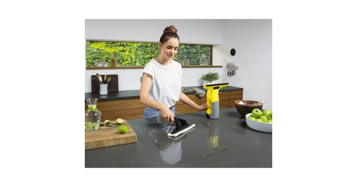 Der Kärcher WV 6 Plus ein flexibler, mit innovativer Lipppentechnologie und längerer Akkulaufzeit ausgestatteter Fenstersauger. Die neue verlängerte Absauglippe ermöglicht das Abziehen der gesamten Oberfläche ohne Unterbrechung. Mit einer extra langen Laufzeit von 100 Minuten ist der Akku-Fenstersauger noch ausdauernder. Und dank des Displays mit minutengenauer Restakkulaufzeit-Anzeige kann die Reinigung genau geplant werden. Wie gewohnt sorgen die clevere Kombination aus Sprühflasche und Mikrofaser-Wischbezug sowie die Absaugfunktion des Fenstersaugers für eine höchst effektive Reinigung und strahlend saubere Fenster – ohne Streifen und Rückstände. Zudem ermöglicht der ergonomische Kärcher Akku-Fenstersauger WV 6 Plus eine besonders hygienische Fensterreinigung, da kein direkter Kontakt mit dem Schmutzwasser erfolgt.Art.-Nr.: 1511682
