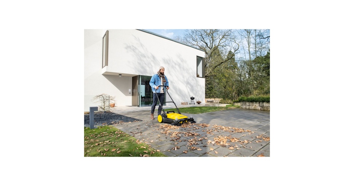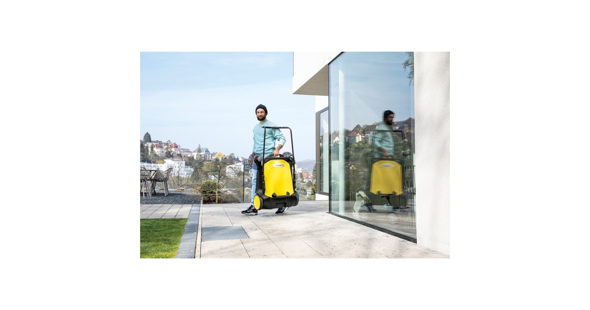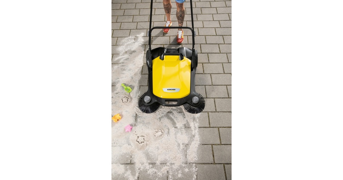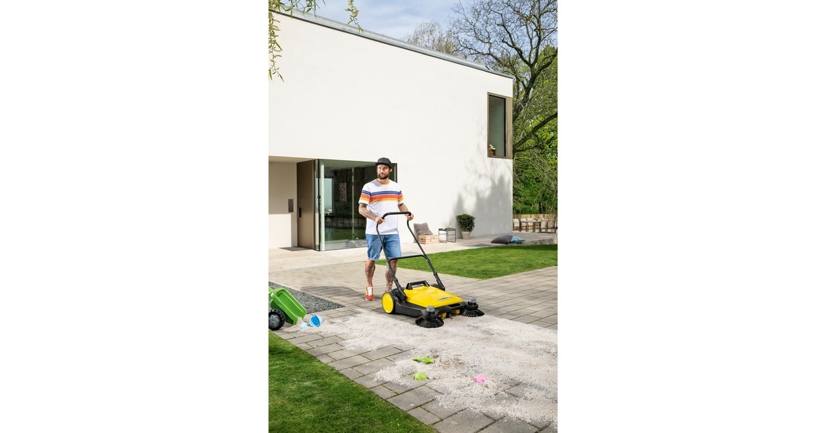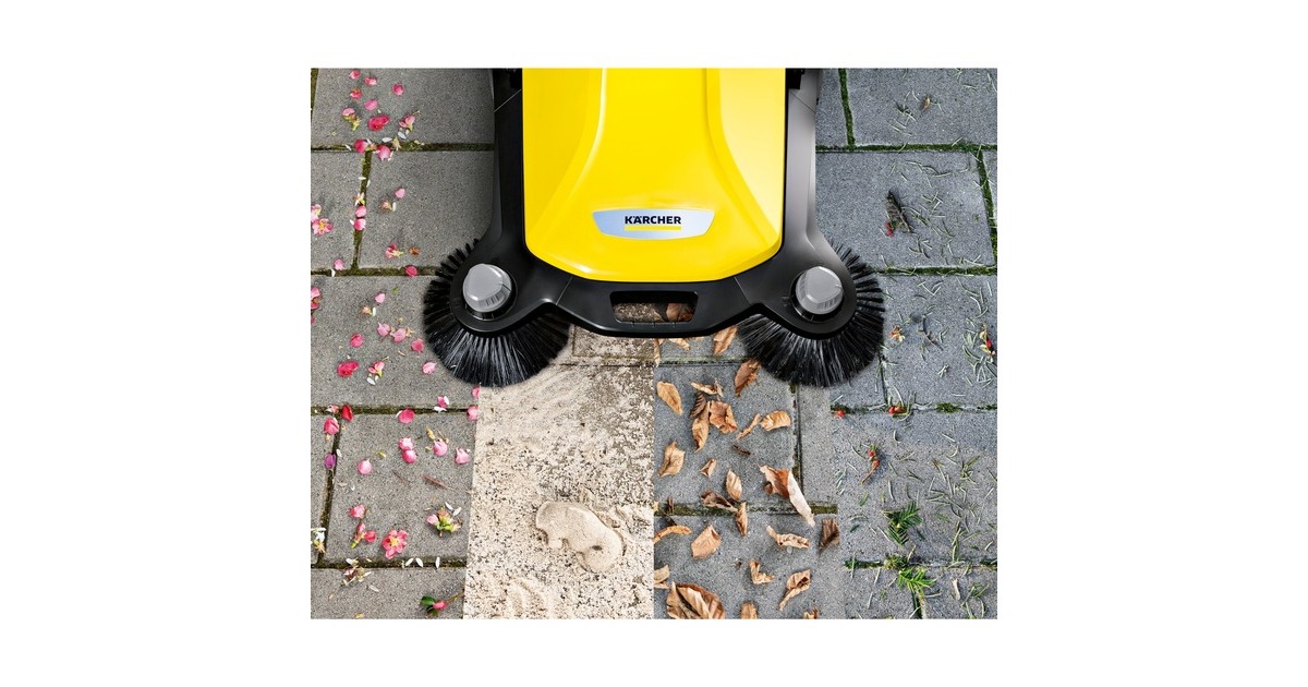 Die Kärcher Kehrmaschine S 6 Twin eignet sich zur Reinigung von Gehwegen, Straßen, Hof- und Garageneinfahrten und Flächen rund ums Haus. Der höhenverstellbare Schubbügel mit Thermo-Handgriff ermöglicht die Einstellung auf die Körpergröße des jeweiligen Nutzers. Der Griff kann bei Bedarf vollständig eingeklappt werden, so kann die Maschine senkrecht platzsparend gelagert werden. Mit der kräftigen effizienten Kehrwalze und den zwei Seitenbesen bietet sie eine Arbeitsbreite von 86cm. Der Kehrbehälter der S 6 Twin lässt sich leicht entnehmen und ist so konstruiert, dass er sicher abgestellt werden kann.Art.-Nr.: 1607491