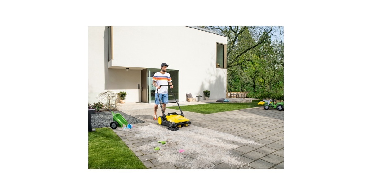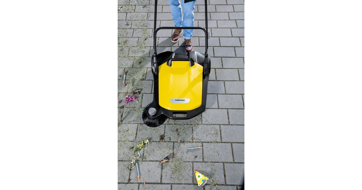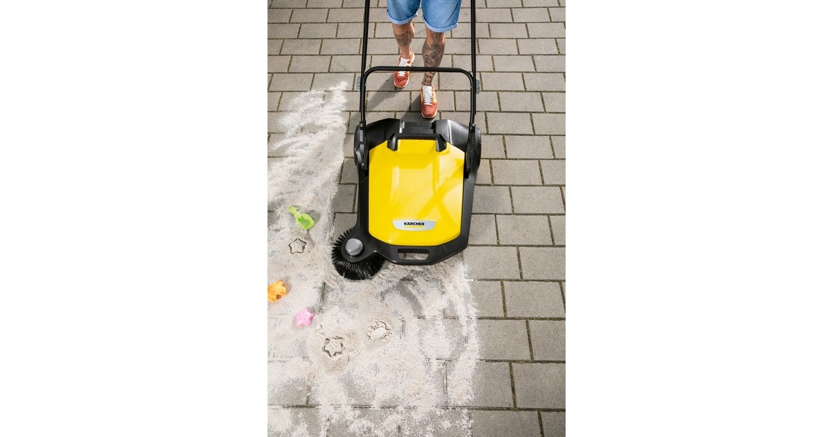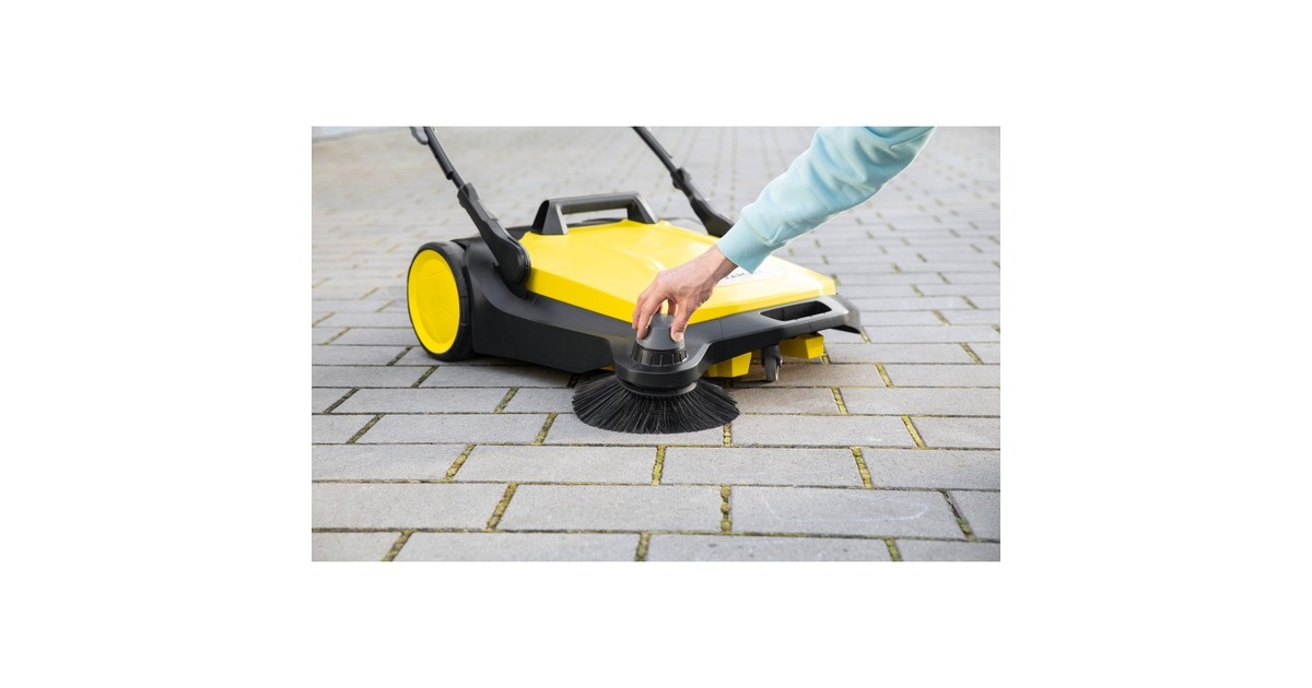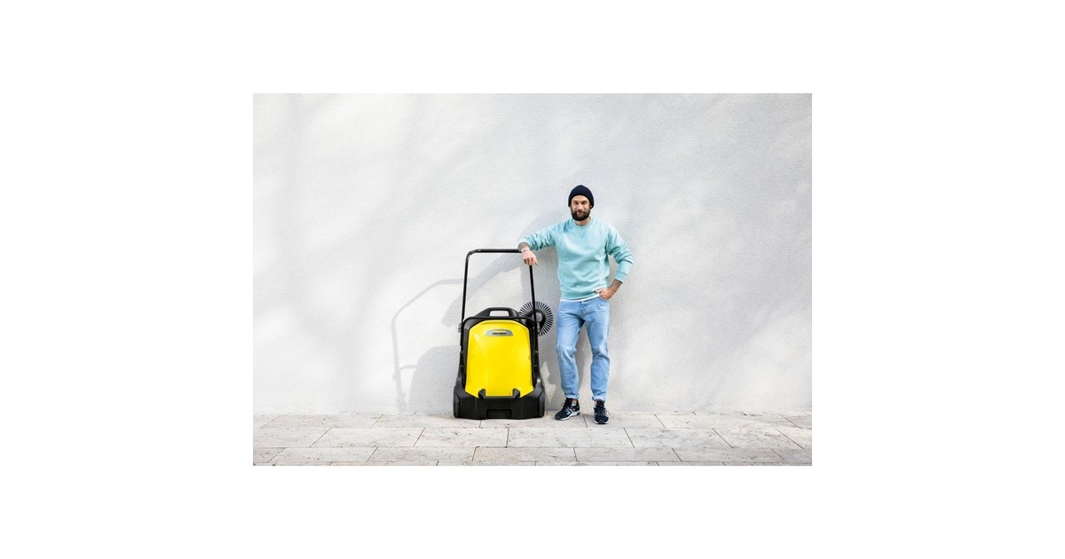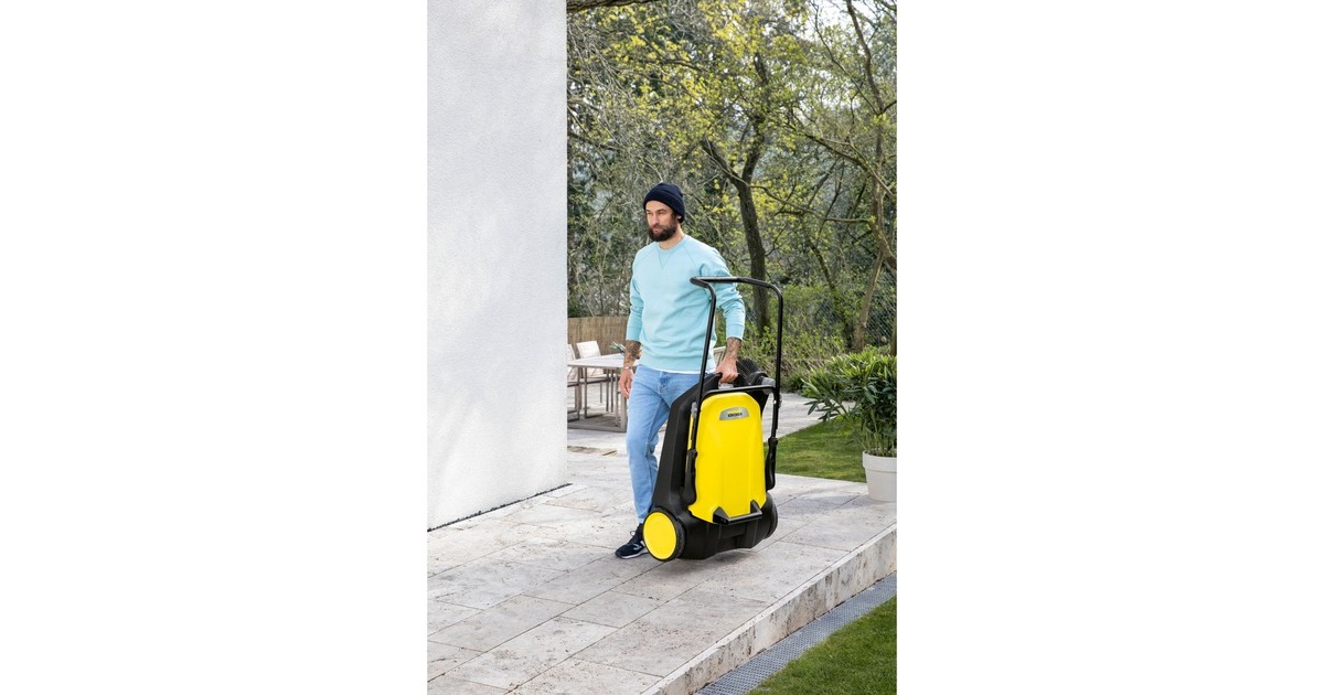 Die Kärcher Kehrmaschine S 6 eignet sich zur Reinigung von Gehwegen, Straßen, Hof- und Garageneinfahrten und Flächen rund ums Haus. Der höhenverstellbare Schubbügel mit Thermo-Handgriff ermöglicht die Einstellung auf die Körpergröße des jeweiligen Nutzers. Der Griff kann bei Bedarf vollständig eingeklappt werden, so kann die Maschine senkrecht platzsparend gelagert werden. Mit der kräftigen effizienten Kehrwalze und dem verstellbaren Seitenbesen bietet sie eine Arbeitsbreite von 67cm. Der Kehrbehälter der S 6 lässt sich leicht entnehmen und ist so konstruiert, dass er sicher abgestellt werden kann.Art.-Nr.: 1607613