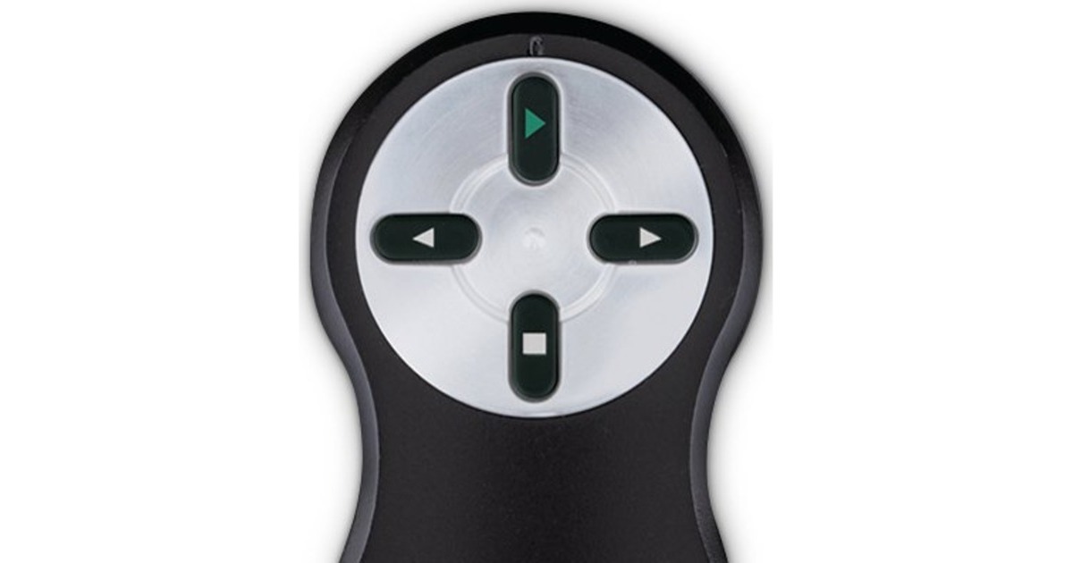 ergonomisches 4-Tasten-Design mit Ein-Finger-Starttaste, der USB-Empfänger kann im Presentergehäuse verstaut werden |