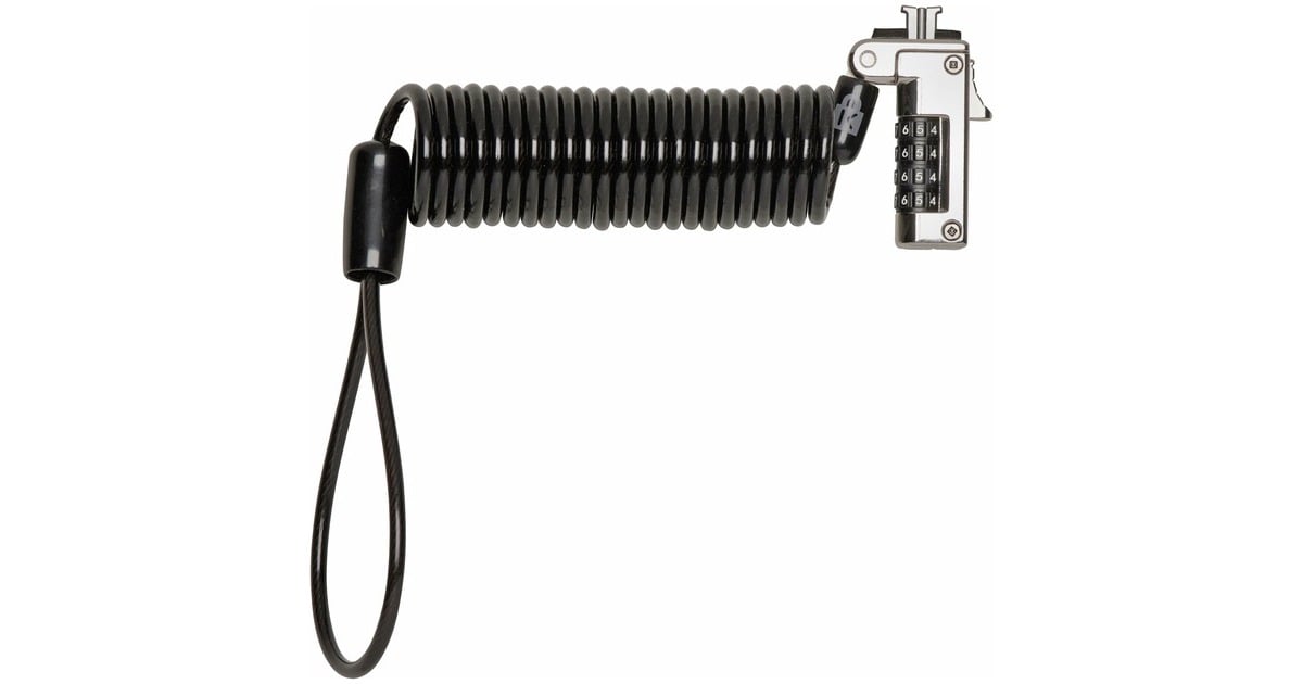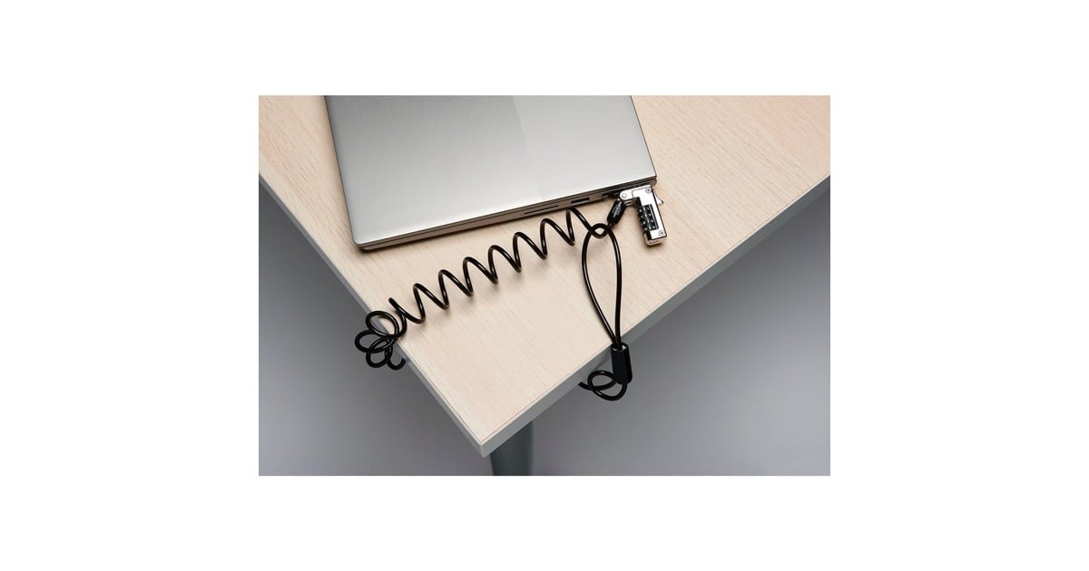 Das Portable Slim Kombinationsschloss für Standard Security-Slots ist ideal für flache Laptops und ermöglicht diesem, flach und stabil aufgestellt zu werden, ohne wertvolle Anschlüsse zu blockieren. Das Karbonstahlkabel mit automatischer Aufwicklung lässt sich auf bis zu 1,80 m ausziehen, ist jedoch im eingezogenen Zustand nur 76 mm lang – ideal zum Mitnehmen. Zu den Besonderheiten gehören eine rücksetzbare vierstellige