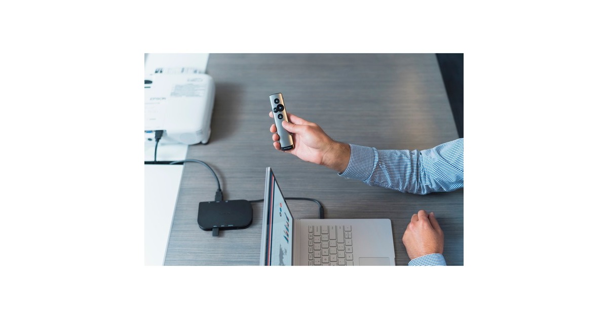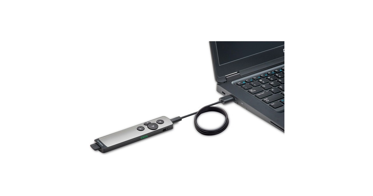 Der laserfreie Presenter für Microsoft PowerPoint mit virtuellem Pointer ist hervorragend für Online-Meetings und -Präsentationen geeignet. Es muss keine Software installiert werden um Funktionen wie den virtuellen Laserpointer, den Textmarker und die Schwarz/Weiß-Bildschirmmodi zu verwenden, da diese bereits in Microsoft PowerPoint integriert sind. Jetzt können alle im Raum und alle, die zugeschaltet sind, den Pointer genau wie vorgesehen sehen. Die größere konkave Taste zum Vorblättern und die kleinere konvexe Taste zum Zurückblättern sind genau wie auf einer Tastatur nebeneinander angeordnet, sodass sie auch in dunklen Sälen leicht ertastet werden können. Der kabellose Empfänger lässt sich an jeden USB 3.0/2.0-Anschluss anschließen und sorgt für einen Einsatzbereich von bis zu 15 Metern, sodass man sich im Raum, auf der Bühne oder im Saal frei bewegen kann. Art.-Nr.: 1631738