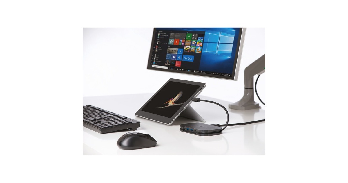 Die Kenginston SD1610P Dockingstation ist wie geschaffen für Surface Notebooks oder Tablets und wird einfach über USB-C mit diesen verbunden - dabei ist das Kabel in der Dockingstation integrierbar und somit immer dabei. Die SD1610P verfügt über einen HDMI- und VGA-Ausgang mit dem Monitore in UltraHD (HDMI) oder FullHD (VGA) betrieben werden können. Weitere Anschlüsse sind z.B. zwei USB-A Ports, eine Gigabit LAN Schnittstelle sowie ein weiterer USB-C Port mit 60 Watt Power Delivery Funktion zum Aufladen angeschlossener Endgeräte.Art.-Nr.: 1631743