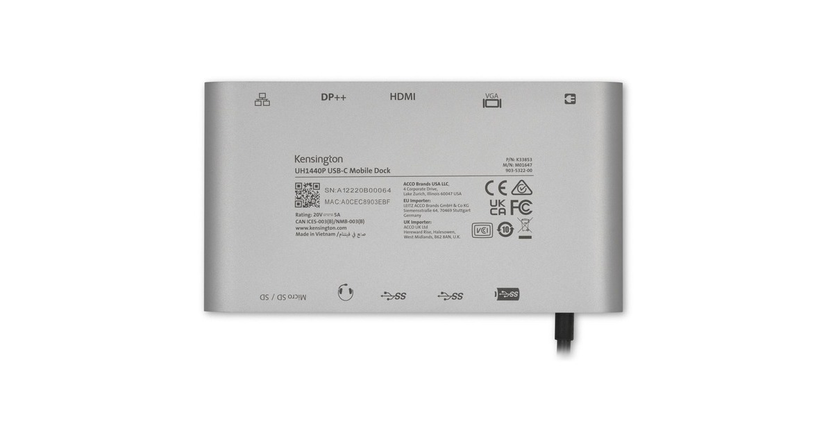 Mit der mobilen UH1440P USB-C 10-in-1 Dockingstation hat man Anschlüsse dabei, die man braucht - ob unterwegs oder zu Hause. Die portable Dockingstation ist universell kompatibel und eine ideale Plug-and-Play-Lösung ohne zusätzlichen Treiber. Ultra HD (Single 4K @ 60Hz) erweitert man visuelle Produktivität durch hohe Auflösung, Kontrast und Farbtiefe. Die UH1440P unterstützt bis zu 85 W Passthrough-Stromversorgung, sodass man ein USB-C-Netzteil zum schnellen und einfachen Aufladen jedes USB-C-fähigen Laptops verwenden kann. Dank des kompakten Design lässt sich diese portable Dockingstation einfach im Rucksack oder in der Tasche verstauen. Ausgestattet mit einem 17 cm langen Kabel, kann sie während des Arbeitens so angeschlossen werden, dass sie nicht im Weg steht.Art.-Nr.: 1865505
