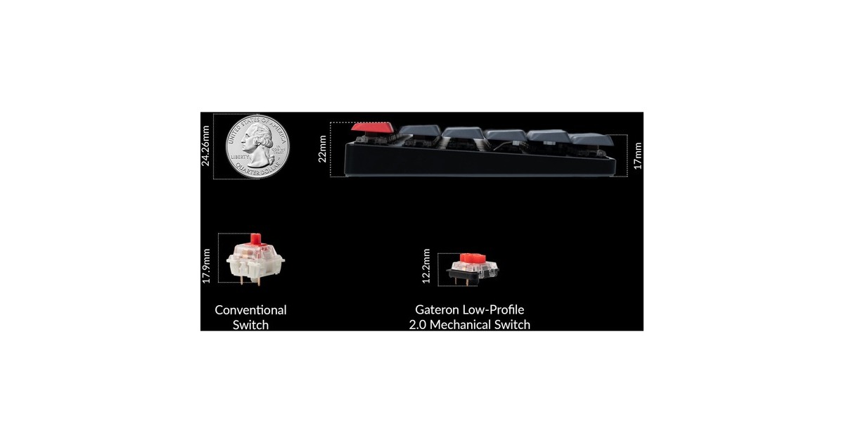 Die K1 Pro ist derzeit nur mit mechanischen Low Profile Schalter von Gateron kompatibel, da QMK keine optischen Low Profile Schalter unterstützt. |
