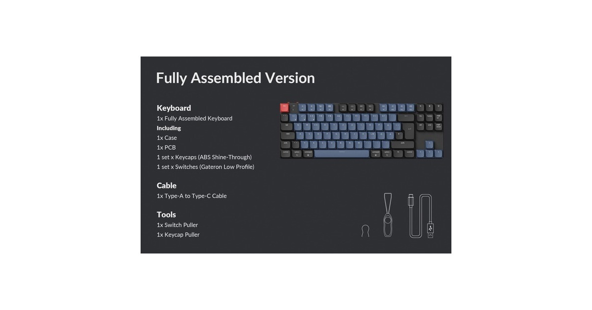 Die K1 Pro ist derzeit nur mit mechanischen Low Profile Schalter von Gateron kompatibel, da QMK keine optischen Low Profile Schalter unterstützt. |