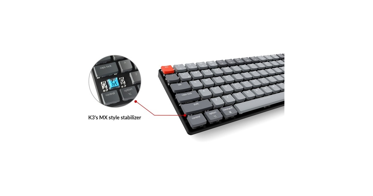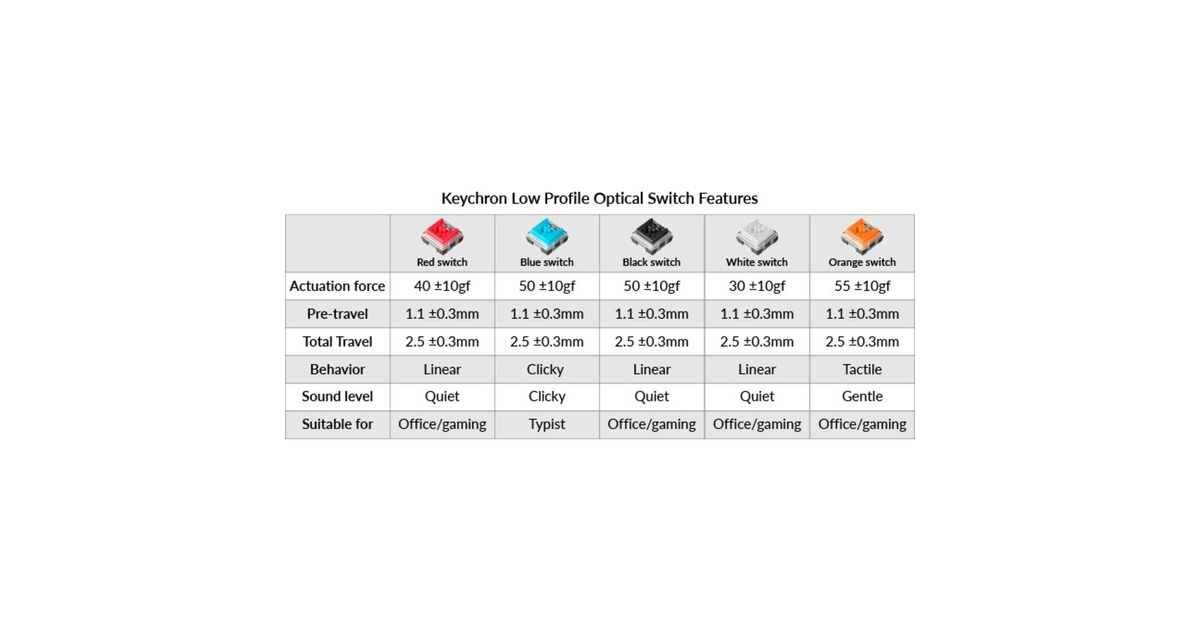 | Hinweis | Die Keychron Low Profile Optical Switch Tastatur ist NICHT mit herkömmlichen mechanischen Schaltern im MX-Stil kompatibel. |