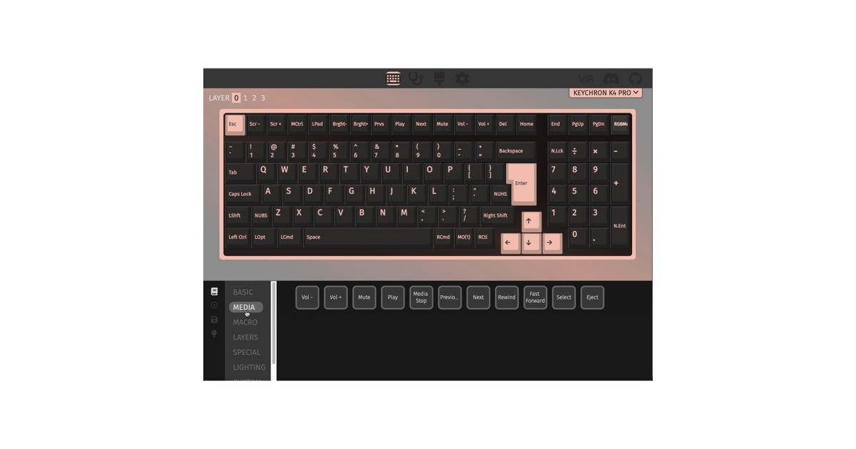 Die Keychron K4 Pro ist eine kabellose mechanische QMK/VIA-Tastatur, die den Weg für eine neue Ära mechanischer Tastaturen ebnet. Über VIA lassen sich beliebige Tasten oder Makrobefehle ganz einfach für macOS, Windows und Linux programmieren und neu zuordnen. Die K4 Pro verfügt über die gleichen Multimedia- und Funktionstastenfunktionen wie die Apple-Tastaturen für Mac-Benutzer, jedoch mit einem besseren taktilen Feedback – und das Ganze in einem 96-%-Format. Der schallabsorbierende Schaumstoff, die dicke Silikondämpfung an der Unterseite und die Stahlplatte sorgen für ein reaktionsschnelles Feedback und ein ruhiges Tippgeräusch, während das zusätzliche Gewicht die Stabilität der K4 Pro auf dem Schreibtisch erhöht. Auf der Leiterplatte sind zudem Stabilisatoren verschraubt, die ein sanfteres Tippen mit weniger Wackeln auf den großen Tasten wie Leer-, Umschalt-, Eingabe- und Löschtaste ermöglichen. Die Hot-Swap-fähigen Sockel sind auf der Platine montiert, sodass Schalter ohne Löten installiert oder gewechselt werden können. Durch die Optimierung der Schalterform wackelt der K Pro Schalter weniger als ein herkömmlicher mechanischer Schalter und fühlt sich bei jedem Anschlag weicher an. Zudem ist er werkseitig mit einem Schmiermittel versehen, was für eine optimale Leichtgängigkeit beim Tippen sorgt. Um das Tipperlebnis noch weiter zu verfeinern, ist die K4 Pro mit dem einzigartigen OSA-Profil (OEM-Profil mit sphärischem Winkel) ausgestattet. Zusammen mit dem in drei Stufen einstellbaren Tippwinkel und dem geneigten untere Rahmen bietet die K4 Pro eine langanhaltende ergonomische Unterstützung des Handgelenks. Die nach Süden ausgerichteten RGB-LEDs sind zudem so konzipiert, dass die Hintergrundbeleuchtung der Tastatur aus dem Blickwinkel des Tippers besser beleuchtet wird, auch wenn alternative Tastenkappen mit Cherry-Profil installiert sind.Art.-Nr.: 1917117