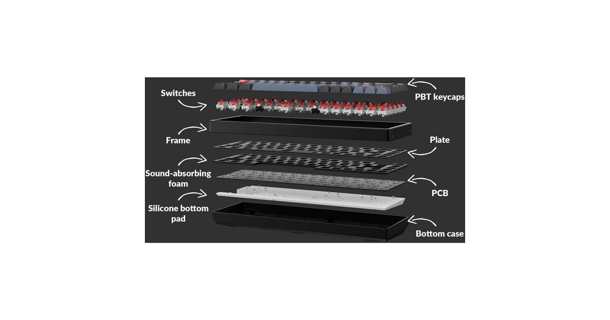 Nach Süden ausgerichtete RGB-Hintergrundbeleuchtung mit 19 Beleuchtungsmodi | Verbindung mit bis zu 3 Geräten | ABS-Tastenkappen | Eingeschraubte PCB-Stabilisatoren| Vollständige QMK- und VIA-Unterstützung | OSA-Tastenkappen-Profil (OEM-Profil mit sphärischem Winkel) | Tippwinkel: 3,5º, 8,5º und 12º | Aluminiumrahmen |
