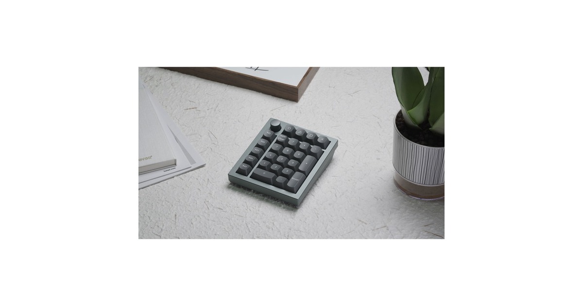 Der Keychron Q0+ ist ein vollständig anpassbarer Mini-Ziffernblock, der als Ziffernblock oder als zusätzlicher Makrotastensatz verwendet werden kann. Sein Metallgehäuse besteht aus 6063-Aluminium, das mit CNC-Maschinen bearbeitet, poliert, eloxiert und sandgestrahlt wird und 24 weitere Fertigungsschritte durchläuft, um das Q0+ zu einem wunderschön gestalteten Gadget für den Schreibtisch zu machen. Die Hot-Swap-fähigen Sockel sind auf der Platine montiert, sodass Schalter ohne Löten installiert oder gewechselt werden können. Die Platine unterstützt sowohl 3-polige als auch 5-polige mechanische Schalter im MX-Stil. Das Einschraubdesign der PCB-Stabilisatoren erhöht die Stabilität und erleichtert Änderungen und Upgrades. Die nach Süden ausgerichteten RGB-LEDs sind so konzipiert, dass die Hintergrundbeleuchtung des Ziffernblocks aus dem Blickwinkel des Tippers besser zur Geltung kommt, wenn hochwertige, nicht durchscheinende PBT-Tastenkappen installiert sind. Die RGB-Beleuchtung ist dadurch auch frei von Interferenzen, wenn alternative Cherry-Tastenkappen installiert werden. Dank vollständiger QMK- und VIA-Unterstützung lässt sich jede Taste auf des Q0+ ganz einfach programmieren und neu belegen. Die Open-Source-Firmware bietet endlose Möglichkeiten für Tastenkombinationen, Hintergrundbeleuchtungseffekte und mehr. Eine ARM Cortex-M4 32-Bit-STM32L432-MCU mit extrem geringem Stromverbrauch, die leistungsstark und mit 128K Flash ausgestattet ist, bietet Entwicklern dabei mehr Flexibilität. Der Q0+-Barebone ist außerdem links oben mit einem Drehregler-Knopf ausgestattet. Art.-Nr.: 1900304
