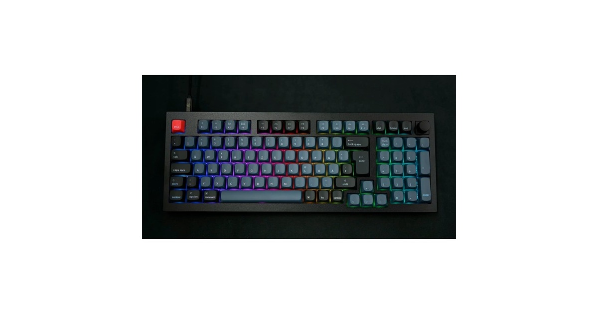 Die Keychron Q5 Knob ist eine vollständig anpassbare mechanische Tastatur, die das Tipperlebnis auf die Spitze treibt. Mit ihrem 96-%-Layout, ihrem CNC-gefrästen Vollaluminium-Gehäuse, ihrem Double-Gasket-Design und der QMK/VIA-Unterstützung ist die Q5 für erstklassigen Schreibkomfort und endlose Möglichkeiten konzipiert. Die optimal geformten, werksseitig vorgeölten Gateron G Pro Schalter sorgen mit ihrer präzisen Positionierung für weniger Wackeln und ein verbessertes Tippgefühl. Die Hot-Swap-fähigen Sockel sind auf der Platine montiert, sodass die Schalter ohne Löten jederzeit gewechselt werden können. Die Platine unterstützt sowohl 3-polige als auch 5-polige mechanische MX-Schalter. Das Einschraubdesign der PCB-Stabilisatoren erhöht die Stabilität und erleichtert Änderungen und Upgrades. Präzise Verarbeitung macht die Stabilisatoren weniger wackelig, wodurch das Tipperlebnis mit den großen Tasten (Leertaste, Umschalttaste, Eingabetaste, Löschen) stabiler und flüssiger ist. Die nach Süden ausgerichteten RGB-LEDs sind so konzipiert, dass die Hintergrundbeleuchtung der Tastatur aus dem Blickwinkel des Tippers besser beleuchtet wird, wenn nicht durchscheinende Tastenkappen installiert sind. Die RGB-Beleuchtung ist dadurch auch frei von Interferenzen, wenn alternative OEM-Profil- oder Cherry-Tastenkappen installiert werden. Dank vollständiger QMK- und VIA-Unterstützung lässt sich jede Taste auf der Tastatur ganz einfach programmieren und neu zuordnen. Die Open-Source-Firmware bietet endlose Möglichkeiten für Tastaturlayouts, Verknüpfungen, Hintergrundbeleuchtungseffekte, sogar den Drehregler und mehr. Eine ARM Cortex-M4 32-Bit-STM32L432-MCU mit extrem geringem Stromverbrauch, die leistungsstark und mit 128K Flash ausgestattet ist, bietet Entwicklern dabei mehr Flexibilität. Die Keychron Q5 wurde auch unter Berücksichtigung der Erfahrung von Mac-Benutzern entwickelt und behält gleichzeitig die Kompatibilität mit Windows-Geräten bei. Sie ist mit einem Systemumschalter an der Seite ausgestattet, sodass sich zwei verschiedene Layouts auf der Tastatur speichern lassen.Art.-Nr.: 1876475