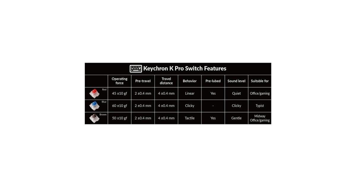 Frosted Black (transluzent) | Vollständig montierte Tastatur inkl. PCB, Aluminiumplatte, Gehäusesilikonpolster, 5 Sets an Stabilisatoren, 1 Set ABS-Tastenkappen und 1 Set Keychron K Pro Tastenschalter (vorgeölt) |