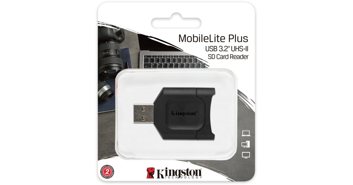 Das MobileLite Plus SD Lesegerät von Kingston bietet USB 3.2 Gen 1-Geschwindigkeiten sowie maximale Leistung für UHS-II-unterstützte SD Karten und ist abwärtskompatibel mit UHS-I-unterstützten SD Karten. Die Verwendung mit Kingstons UHS-II-unterstützten SD Karten bietet optimale Leistung und Zuverlässigkeit. Mit dem MobileLite Plus SD Lesegerät steigert man die Effizienz der Arbeitsabläufe mit unglaublichen UHS-II-Geschwindigkeiten für schnellere Dateiübertragungen und höhere Verarbeitungszeiten. Das Kartenlesegerät bietet ein minimalistisches und kompaktes Design für mehr Mobilität, wodurch es zum perfekten Reisebegleiter wird, damit man alles für die Weiterverarbeitung auch auf Reisen zur Hand hat. Das Lesegerät wird am besten zusammen mit Kingston Canvas Go! Plus oder Canvas React Plus SD-Karten verwendet.Art.-Nr.: 1625089
