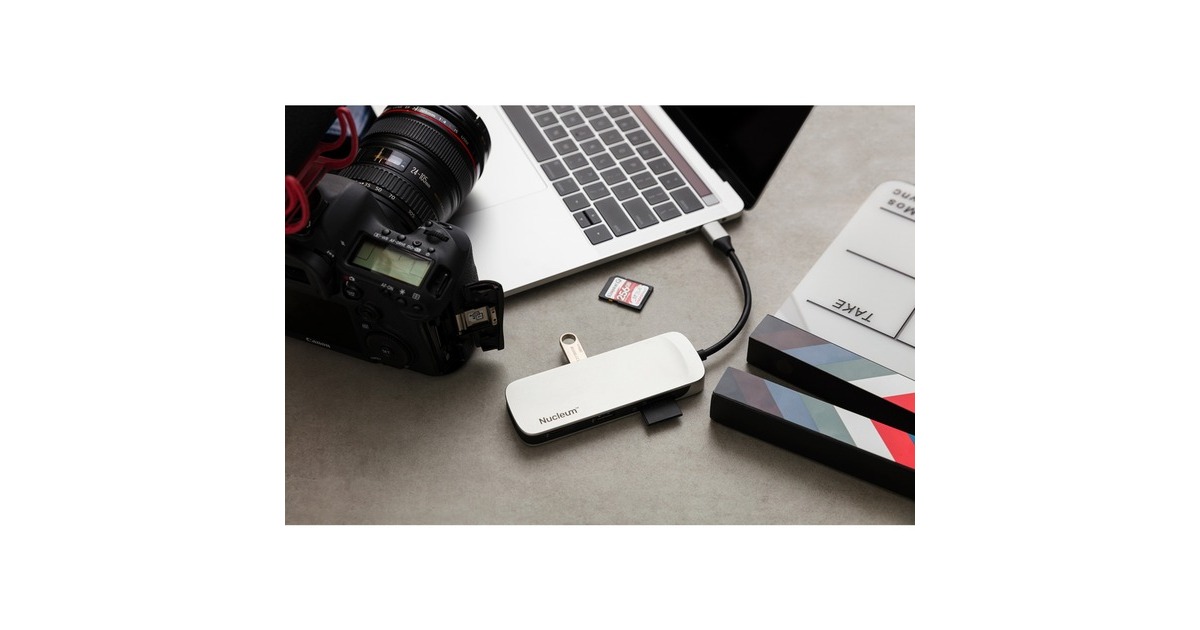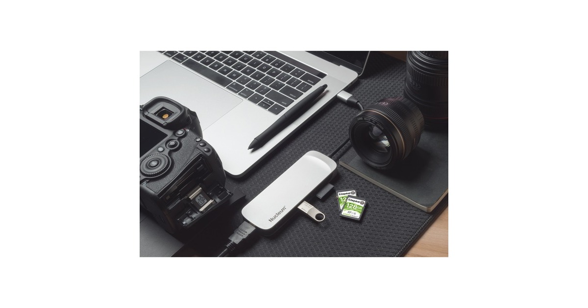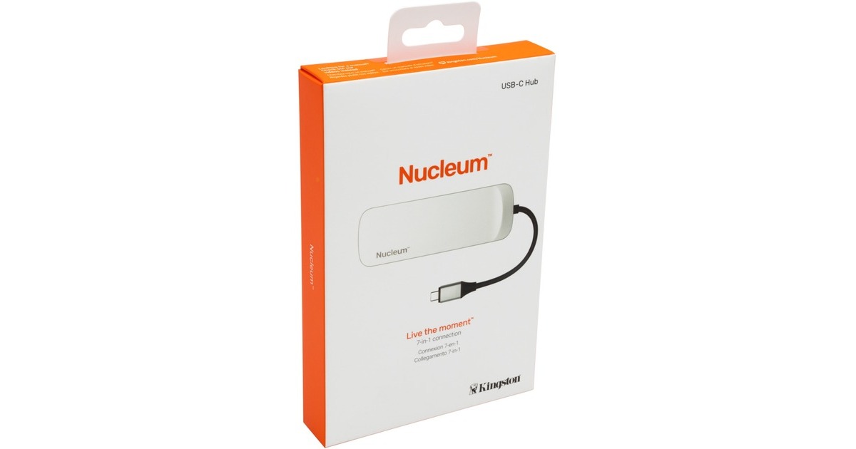 Der Nucleum USB-C-Hub von Kingston erweitert das Notebook um eine Vielzahl an Anschlüssen. Per USB lassen sich Maus, Tastatur, USB-Stick und anderes Zubehör anschließen. Der Desktop kann mit einem zweiten Monitor über HDMI erweitern werden. Das laden des Notebooks ist mit dem 60W Power Delivery möglich. Zudem verfügt der Hub noch über einen SD- und microSD-Kartenleser.Art.-Nr.: 1860166
