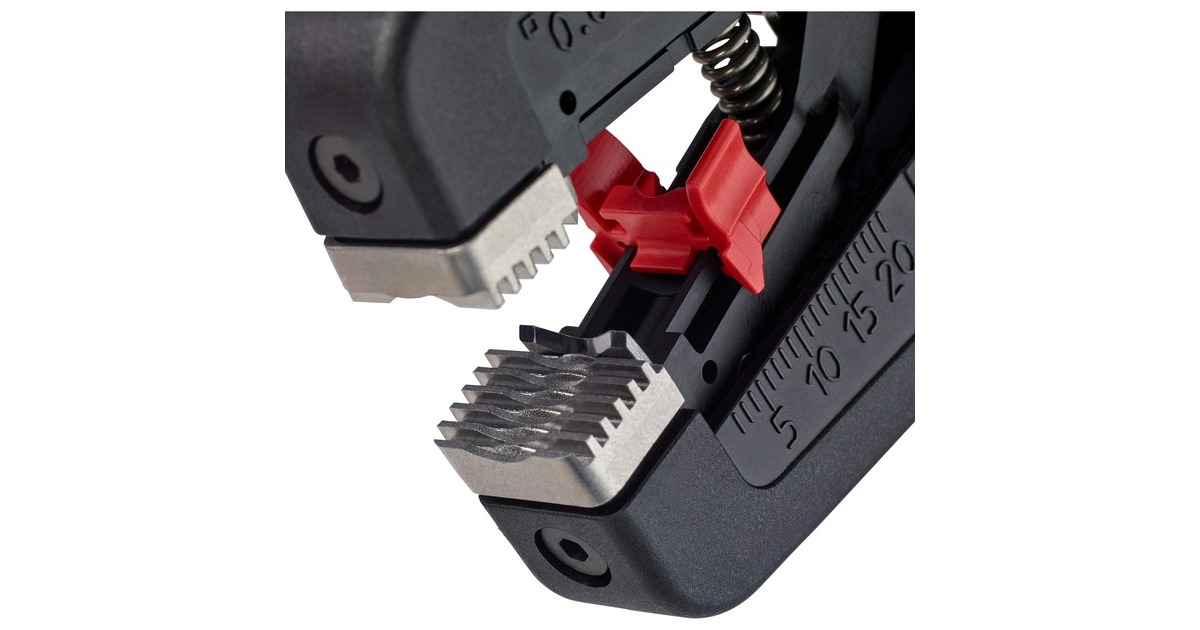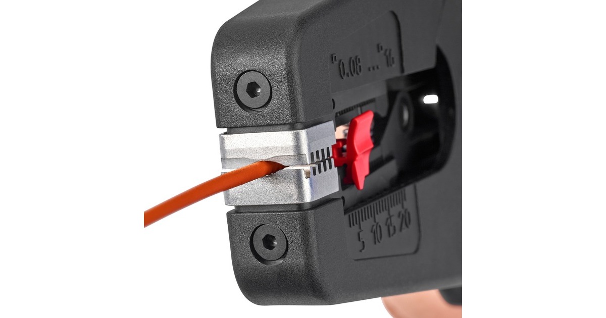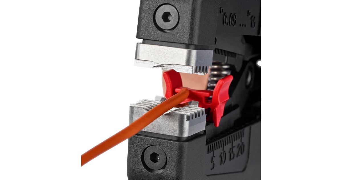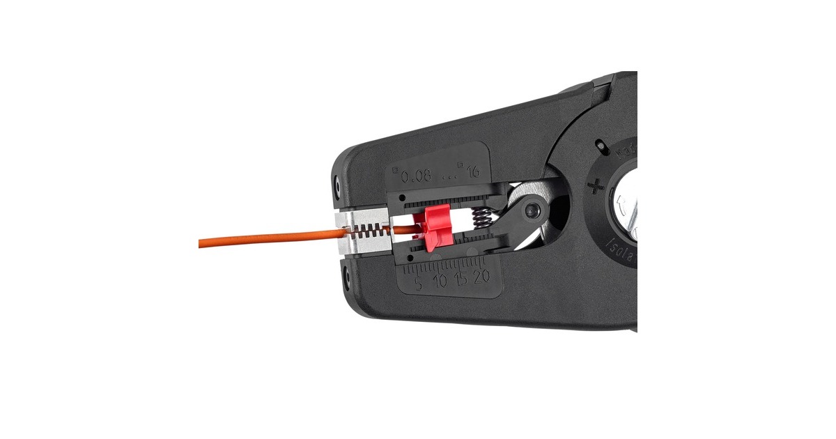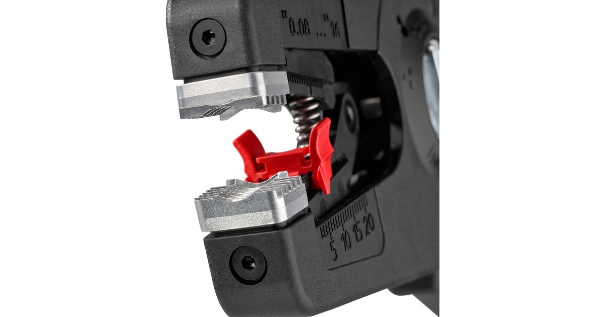 Der Einsatzbereich der KNIPEX PreciStrip 16 ist riesig. Mit der automatischen Abisolierzange lassen sich feinste, flexible und massive Kabel schnell und präzise abisolieren. Der Kapazitätsbereich reicht dabei von 0,08 bis 16mm². Dank Feinjustierung isoliert das neue Werkzeug innerhalb des großen Kapazitätsbereichs auch da automatisch ab, wo herkömmliche Automatiken sonst oft scheitern. Passend zu speziellen Materialien oder Temperaturbedingungen lässt sich die KNIPEX PreciStrip 16 Abisolierzange ganz einfach per Verstellrad feinjustieren. Das Herzstück der Hightech-Abisolierzange besteht aus parabelförmigen Messern, die zunächst die Isolation von sowohl feindrähtigen als auch massiven Rundkabeln trennen und diese dann ganz automatisch nach hinten abziehen. Dabei umschließt das Messerpaar weitgehend die Isolation und eignet sich so auch für viele flexible Materialien. Die halbrunden Haltebacken mit Kammprofil erzeugen einen festen Grip und halten praktisch jedes Isoliermaterial sicher fest. Komplettiert wird die KNIPEX PreciStrip16 durch einen Kabelschneider an der Oberseite, der flexible Kabel passend zum Kapazitätsbereich bis 16mm² zuverlässig durchtrennt. Für Arbeiten, die präzise wiederholt werden müssen, gibt es außerdem einen einstellbaren Längenanschlag.Art.-Nr.: 1789953