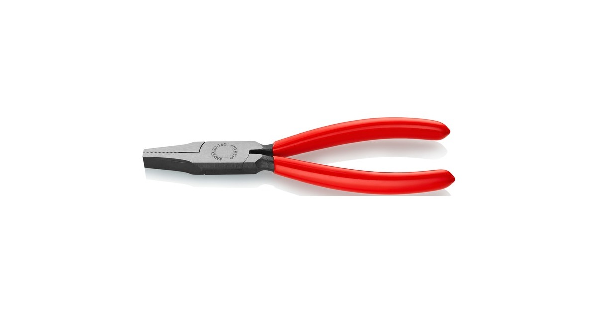 Die Knipex Flachzange 20 01 160 eignet sich durch ihre flachen kurzen breiten Backen optimal für Greifarbeiten. Die Greifflächen sind für idealen Halt mit Zähnen versehen. Geschmiedet aus Spezial-Werkzeugstahl, ist die Flachzange 20 01 160 zusätzlich ölgehärtet, für besondere Robustheit. Die Griffe sind mit Kunststoff überzogen.Art.-Nr.: 1768892