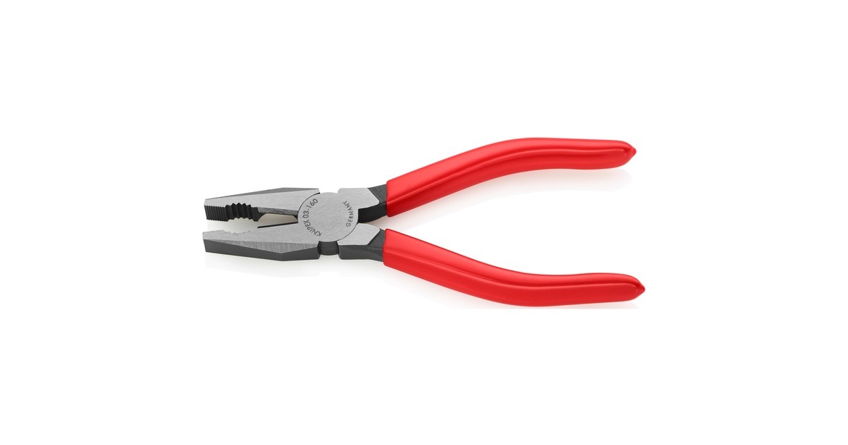 Die Kombizange 03 01 160 von KNIPEX ist für vielseitigen Einsatz konstruiert. Sie hat Greifzonen für Flach- und Rundmaterial und Schneiden für weichen Draht sowie harten Draht, Die langen Schneiden eignen sich besonders für dickere Kabel. Die Schneiden sind zusätzlich induktiv gehärtet. Die Kombizange ist aus Spezial-Werkzeugstahl geschmiedet und mehrstufig ölgehärtet. Die Griffe sind mit Kunststoff überzogen.Art.-Nr.: 1441846