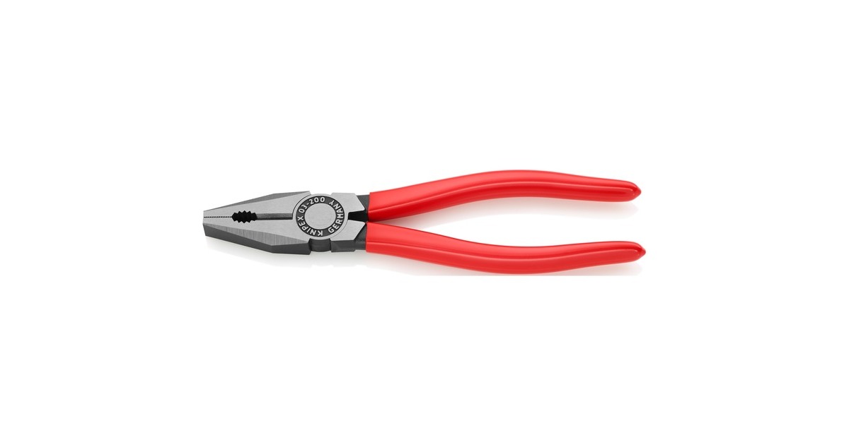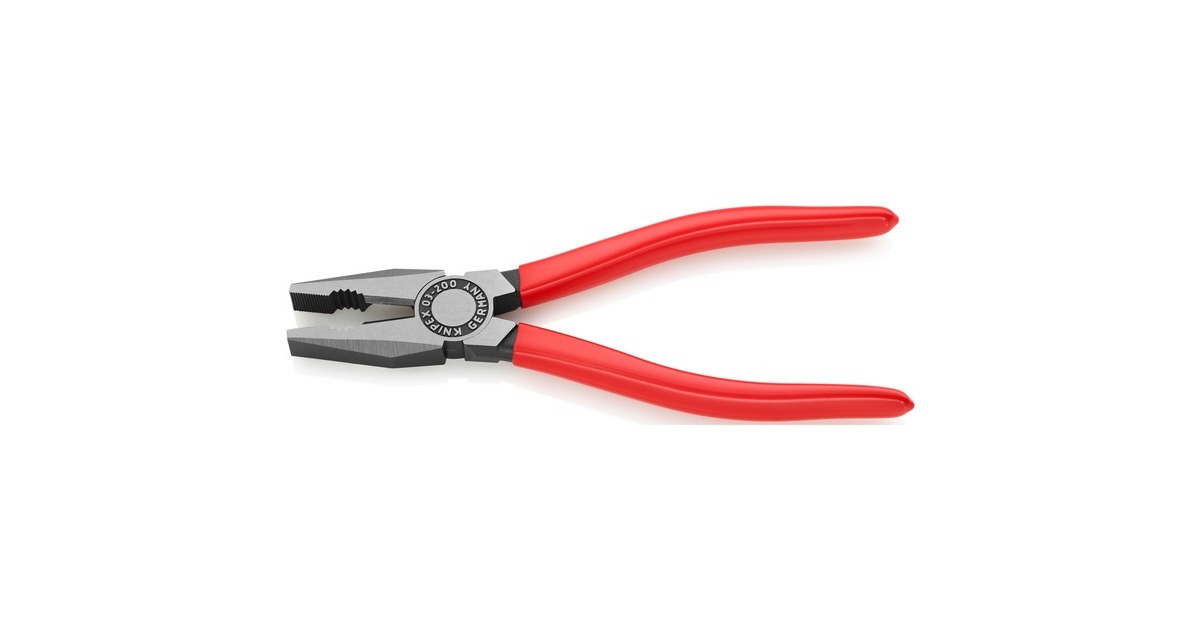Die Kombizange 03 01 200 von KNIPEX ist für vielseitigen Einsatz konstruiert. Sie hat Greifzonen für Flach- und Rundmaterial und Schneiden für weichen Draht sowie harten Draht, Die langen Schneiden eignen sich besonders für dickere Kabel. Die Schneiden sind zusätzlich induktiv gehärtet. Die Kombizange ist aus Spezial-Werkzeugstahl geschmiedet und mehrstufig ölgehärtet. Die Griffe sind mit Kunststoff überzogen.Art.-Nr.: 1441862