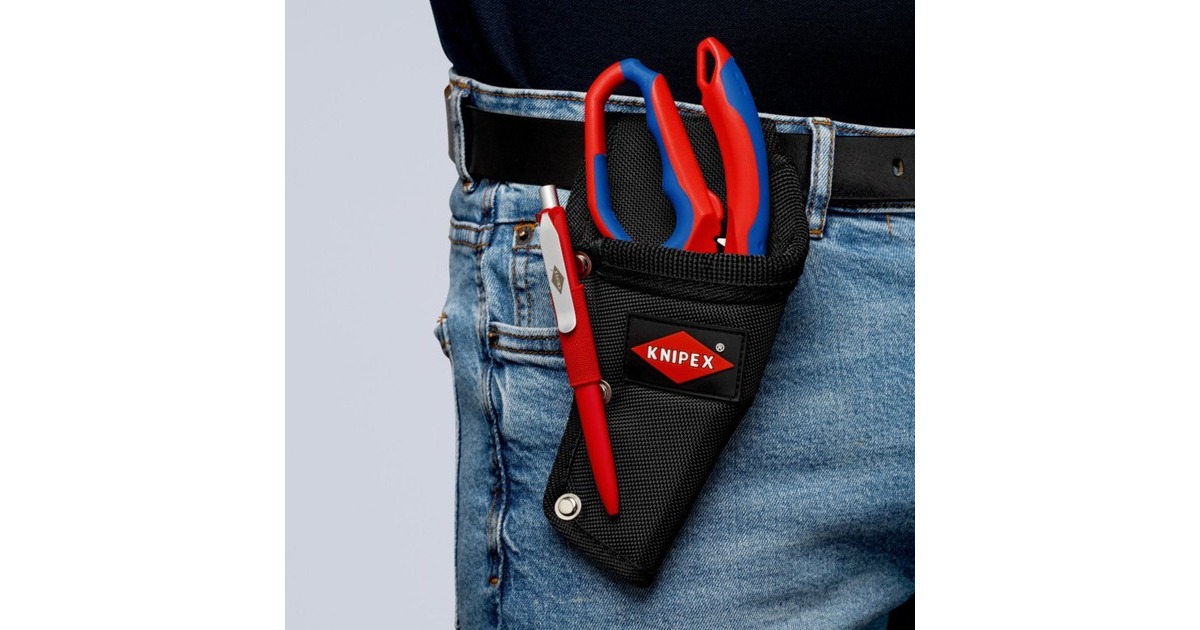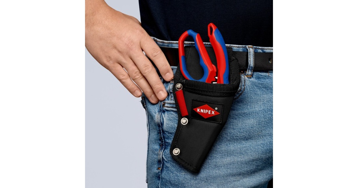 Die konisch geschnittene Knipex Mehrzweck-Gürteltasche bietet Platz für 1 bis 3 Handwerkzeuge. Die Tasche ist ideal geformt für die gewinkelte Elektrikerschere 95 05 20 SB. Auch für Universalmesser Knipex CutiX oder ähnlich schlanke Werkzeuge wie die Elektro-Installationszange oder die Knipex TwinGrip Frontgreifzange geeignet.Art.-Nr.: 1844690
