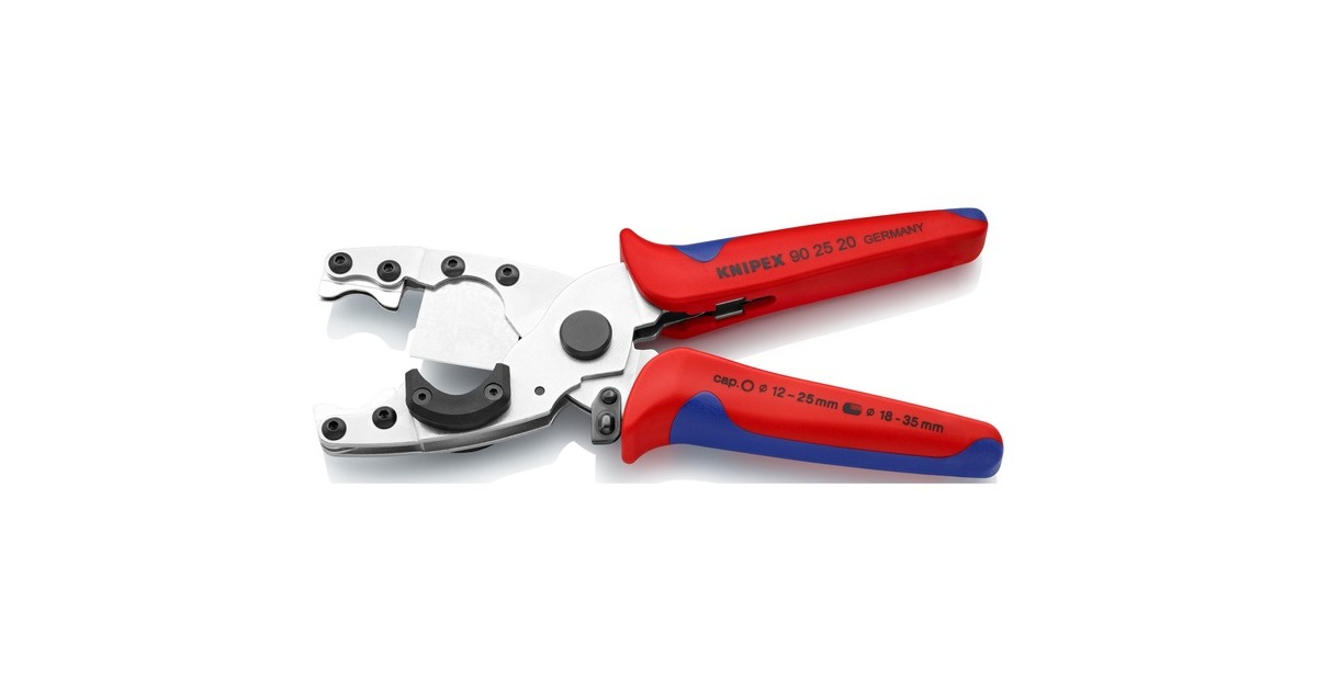 Der Knipex Rohrschneider 90 25 20 eignet sich ideal zum Schneiden von Verbundrohren mit 12 bis 25mm Durchmesser und zum Schneiden von flexiblen Schutzrohren von 18 bis 35mm Durchmesser, ohne das innenliegende Rohr zu verletzen. Zudem bietet sie die Möglichkeit zur Anbringung eines Kalibrierdorns von 11,5 und 15mm Durchmesser, z.B. für Geberit-Verbundrohre. Der Werkzeugkörper ist aus Chrom-Vanadium-Elektrostahl in Sondergüte hergestellt und ölgehärtet. Das Messer ist ölgehärtet und aus Spezial-Werkzeugstahl gefertigt.Art.-Nr.: 1265695