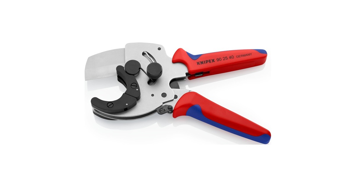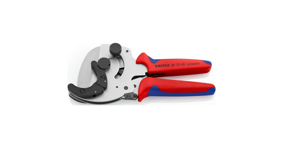 Der Knipex Rohrschneider für Verbund- und Kunststoffrohre 90 25 40 eignet sich ideal zum Schneiden dickwandiger Kunststoff- und Verbundrohre bis 40mm Außendurchmesser. Schon beim Einlegen des Kunststoff- oder Verbundrohrs wird es automatisch exakt im 90°-Winkel zum Messer positioniert. Die beweglichen Auflagebacken zentrieren und fixieren das Rohr zuverlässig. Der Schnitt durch das Rohr gelingt so automatisch im rechten Winkel zum Rohr. Mit jedem Betätigen des Rohrschneiders wird jeweils ein Messerhub ausgelöst, denn das schrittweise Schneiden erfolgt nach dem Ratschenprinzip. Das Schneiden des Rohres erfolgt in mehreren Schritten, der Kraftaufwand ist deshalb sehr gering. Die beweglichen Auflagebacken passen sich dickwandigen Verbund- und Kunststoffrohren von 26mm bis 40mm von alleine an, und die Griffe des Ratschen-Rohrschneiders öffnen sich dank Öffnungsfeder von alleine. Das Messer aus Spezial-Werkzeugstahl ist austauschbar. Der Werkzeugkörper besteht aus Chrom-Vanadin-Elektrostahl in Sondergüte, ölgehärtet und die Griffe sind dank Mehrkomponenten-Hüllen besonders rutschsicher und komfortabel.Art.-Nr.: 1866077