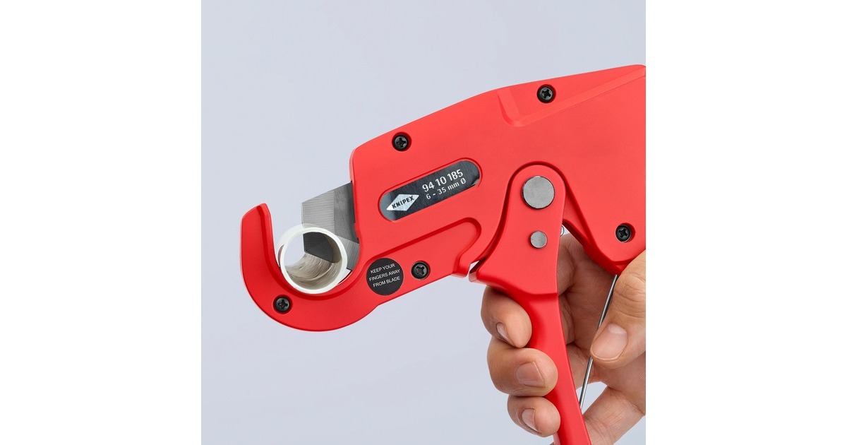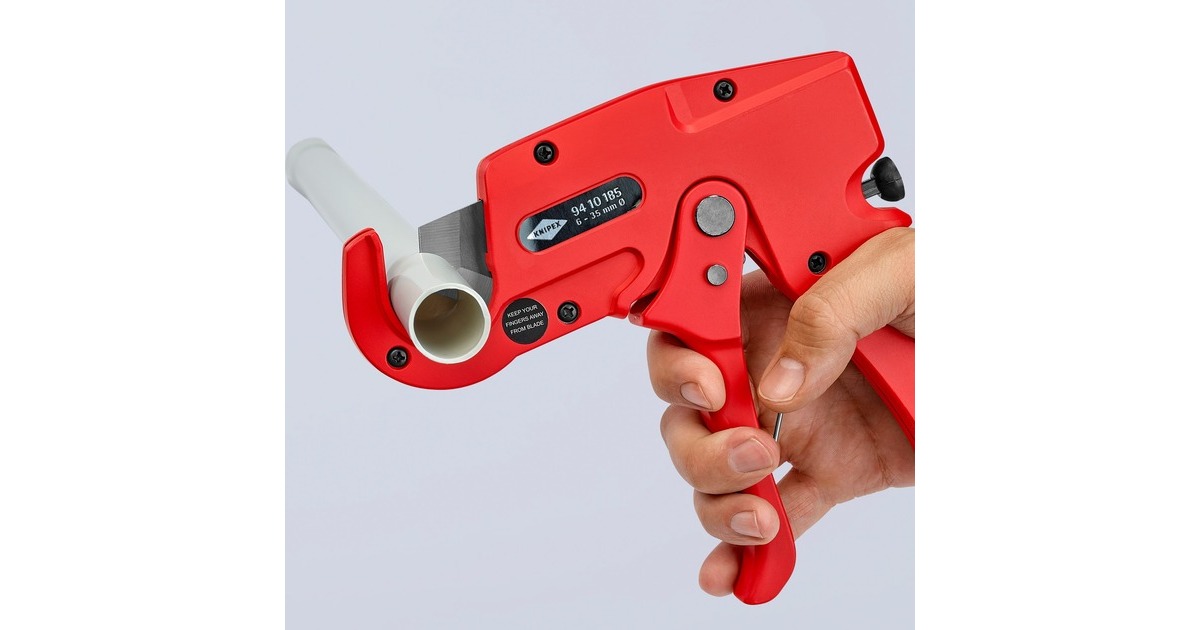 Der Knipex Rohrschneider 94 10 185 eignet sich ideal zum gratfreien Schneiden von Kunststoffrohren mit 6 - 35mm Durchmesser. Das Messer ist austauschbar und aus jeder Position zurückholbar. Spezielle Schneidengeometrie und optimale Übersetzung sorgen für minimalen Kraftaufwand. Die ergonomische Griffgestaltung und der schrittweise Messervorschub erleichtern das Arbeiten und verringern Ermüdungserscheinungen. Das Gehäuse besteht aus Aluminium-Druckguss und das Messer ist ölgehärtet aus Spezial-Werkzeugstahl gefertigt.Art.-Nr.: 1265749
