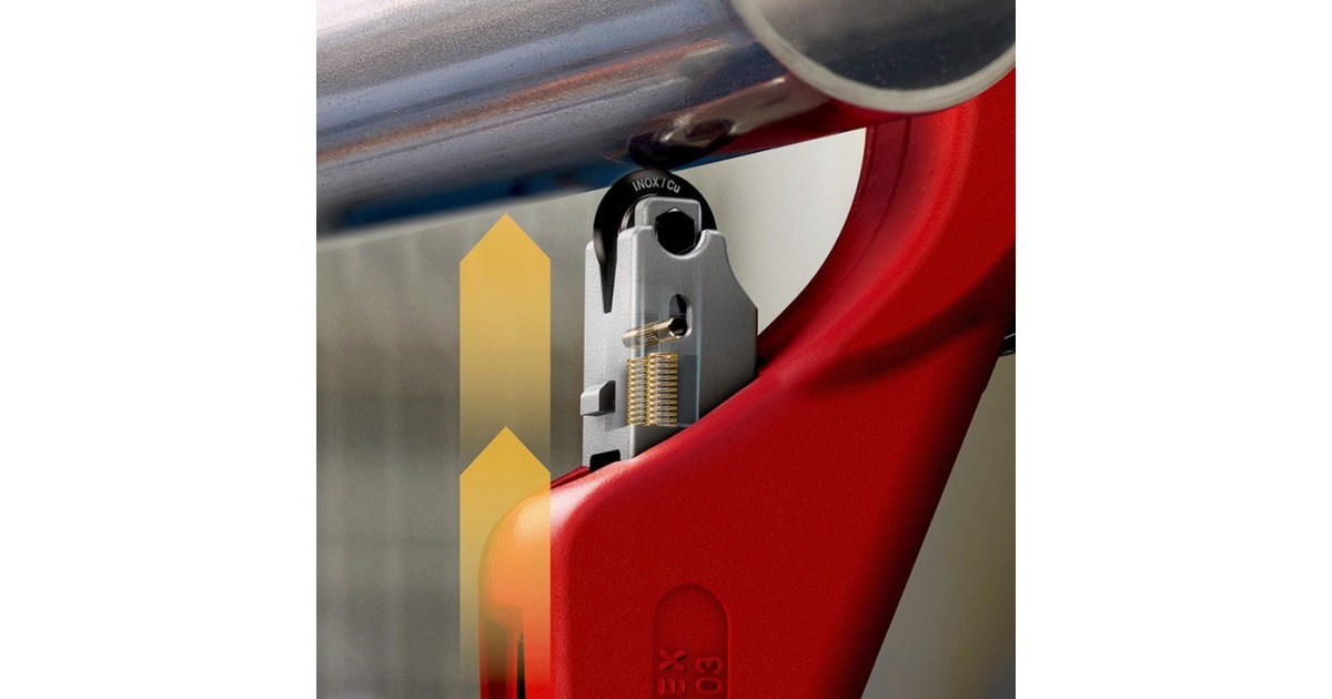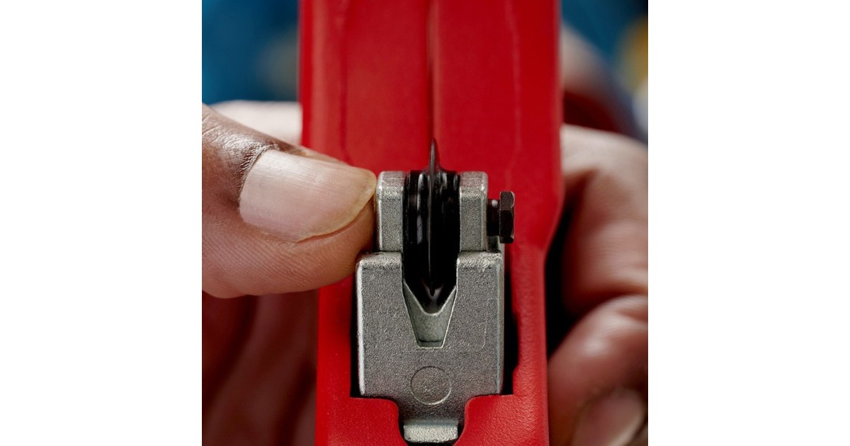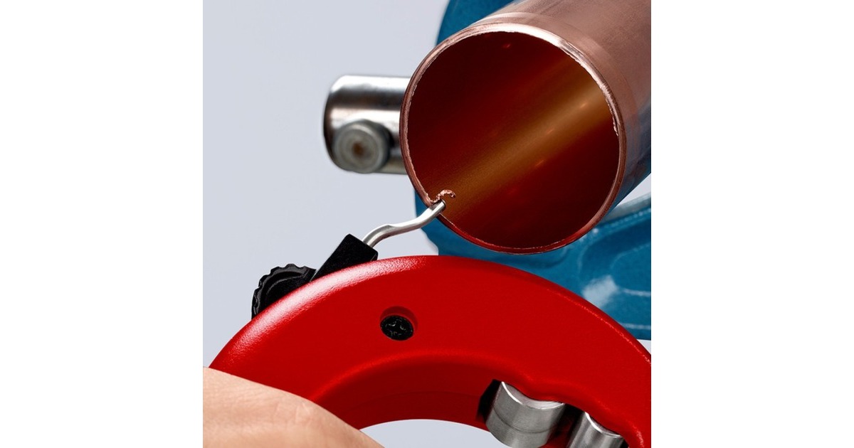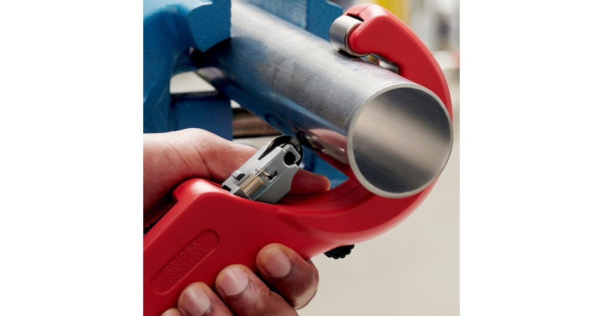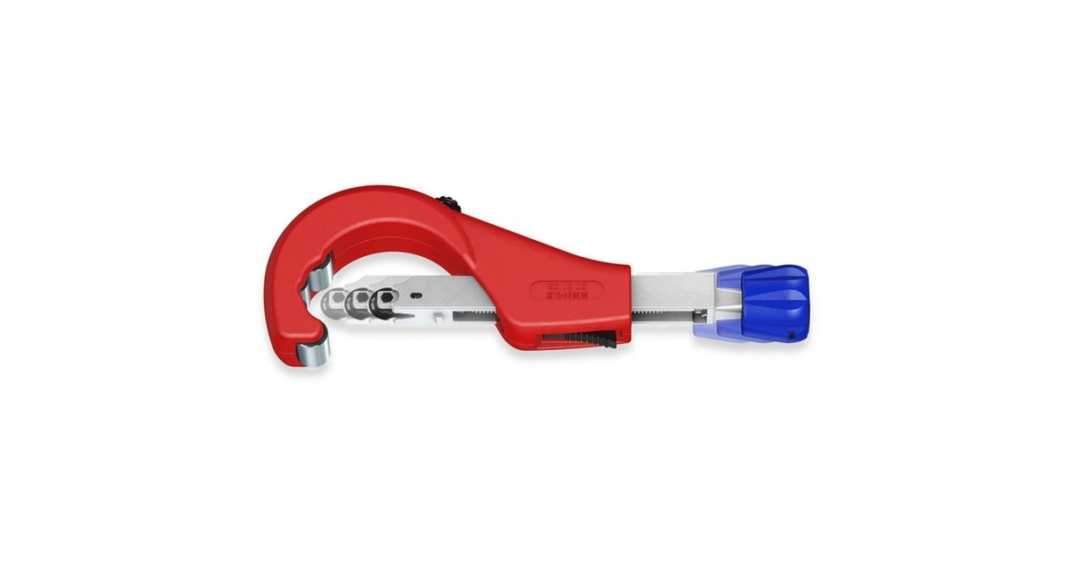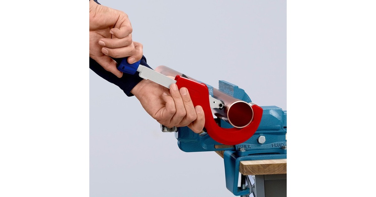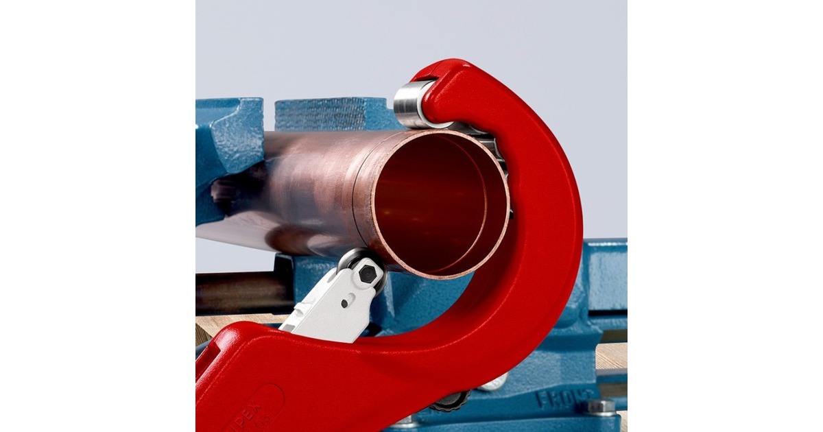 Der 26cm lange KNIPEX TubiX XL Rohrabschneider schneidet Rohre aus Kupfer, Messing und Edelstahl. Mit nur einer Hand lässt er sich an Rohre von 6 bis 76mm (1/4" - 3") Durchmesser exakt positionieren und schneidet Wandstärken bis 2mm ohne größeren Kraftaufwand. Die QuickLock-Einhand-Schnellfixierung führt das Werkzeug fest an das Rohr heran, fixiert es und positioniert das Schneidrad präzise an den unterschiedlichen Rohrdurchmessern. Durch das abgefederte Schneidrad ist der KNIPEX TubiX XL am Rohr fixiert und kann nicht mehr seitlich verrutschen. Dann wird das Rohr durch Drehung des Werkzeugs geschnitten, wobei mit dem ergonomischen Drehknauf der Abstand zur Schneide kontinuierlich nachgestellt werden kann. Im Kopf versteckt sich außerdem ein praktischer Entgrater, der sich leicht herausschieben oder bei Bedarf auch ganz entnehmen lässt. Das Schneidrad des TubiX XL ist aus hochwertigem Kugellagerstahl gefertigt, das Metallgehäuse aus leichtem und langlebigem Aluminium. Das nadelgelagerte und abgefederte Schneidrad lässt sich leicht auswechseln, ein Ersatzrad befindet sich bereits im blauen Griffknauf.Art.-Nr.: 1844658
