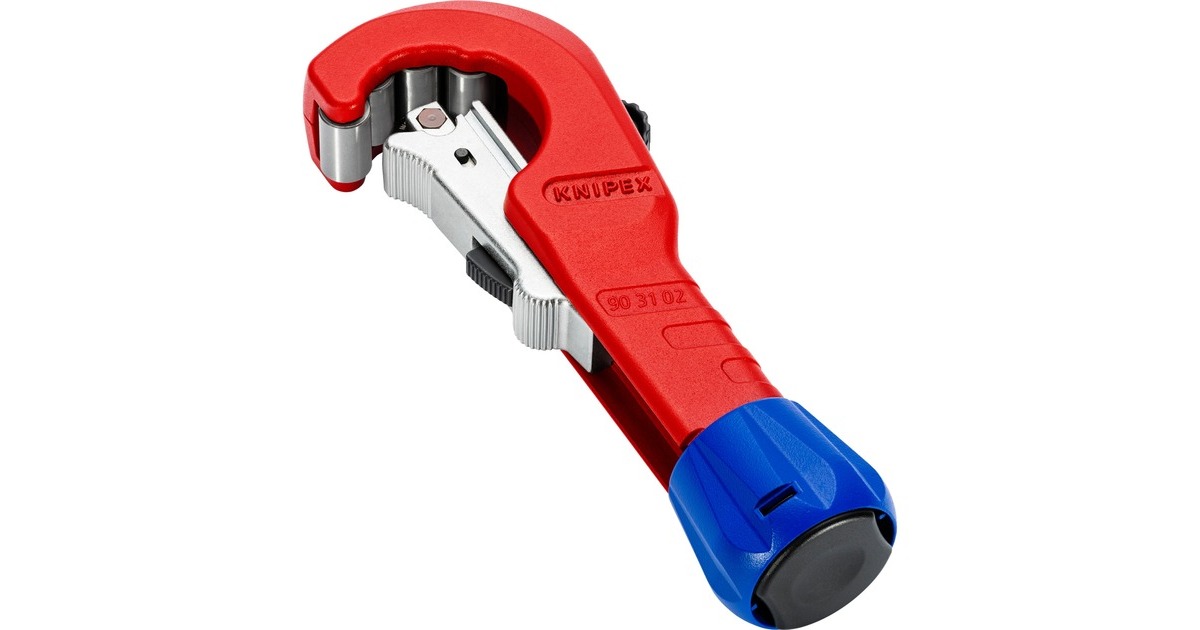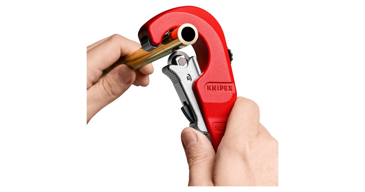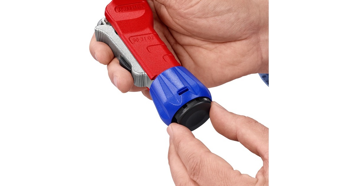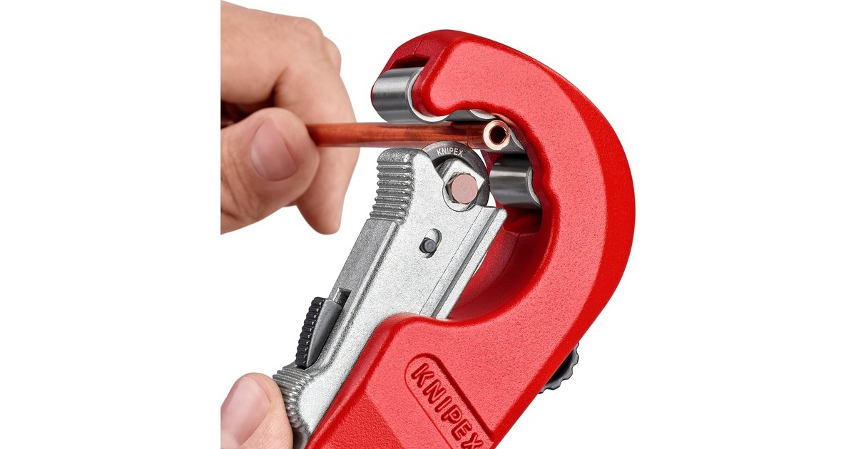 Der 18cm lange KNIPEX TubiX Rohrabschneider schneidet Rohre aus Kupfer, Messing und Edelstahl. Mit nur einer Hand lässt er sich an Rohre von 6 bis 35mm (1/4" - 1.3/8") Durchmesser exakt positionieren und schneidet Wandstärken bis 2mm ohne größeren Kraftaufwand. Die QuickLock-Einhand-Schnellfixierung führt das Werkzeug fest an das Rohr heran, fixiert es und positioniert das Schneidrad präzise an den unterschiedlichen Rohrdurchmessern. Dann wird das Rohr durch Drehung des Werkzeugs geschnitten, wobei mit dem ergonomischen Drehknauf der Abstand zur Schneide kontinuierlich nachgestellt werden kann. Im Kopf versteckt sich außerdem ein praktischer Entgrater, der sich leicht herausschieben oder bei Bedarf auch ganz entnehmen lässt. Das Schneidrad des TubiX ist aus hochwertigem Kugellagerstahl gefertigt, das Metallgehäuse aus leichtem und langlebigem Magnesium. Das nadelgelagerte und abgefederte Schneidrad lässt sich leicht auswechseln, ein Ersatzrad befindet sich bereits im blauen Griffknauf.Art.-Nr.: 1822624