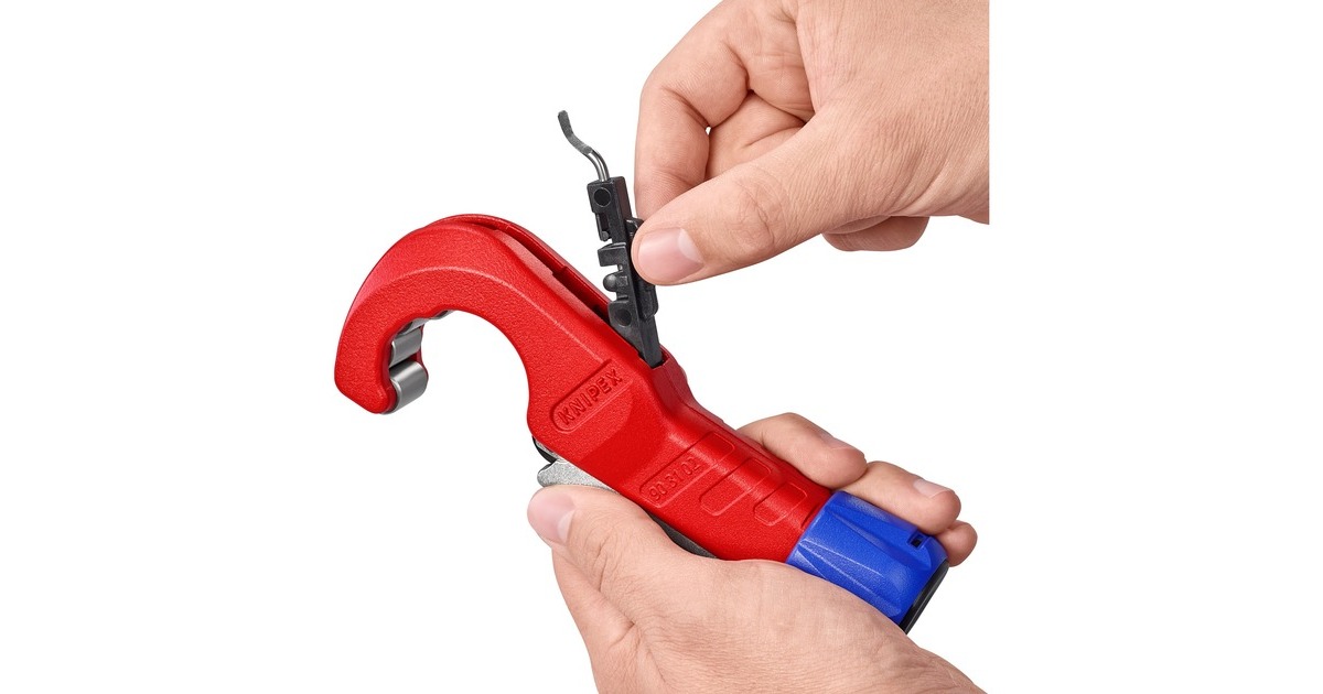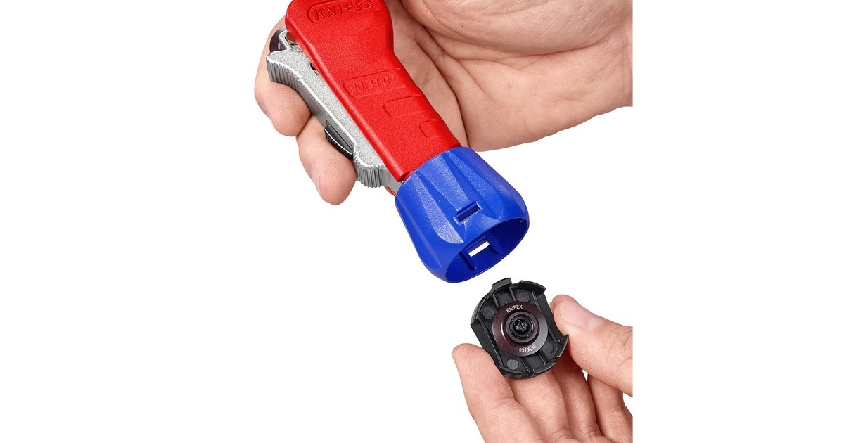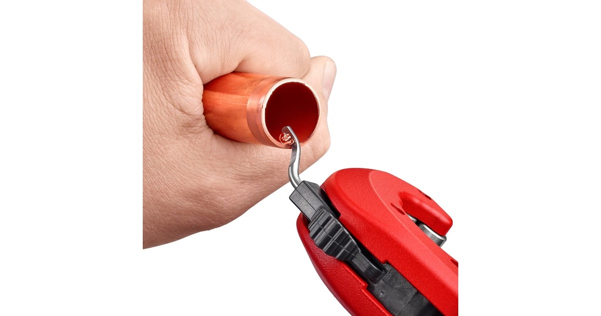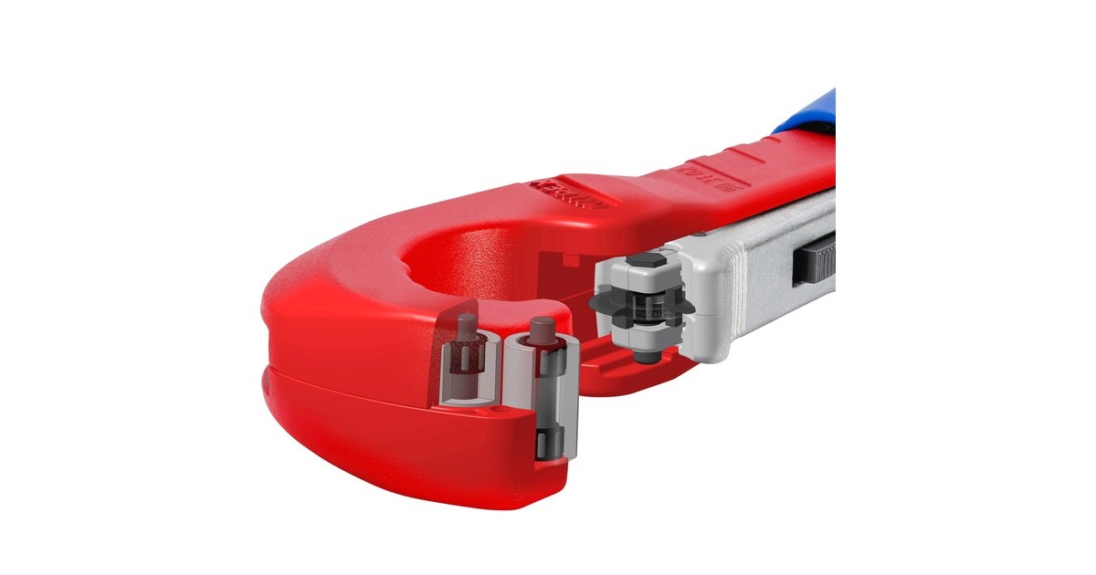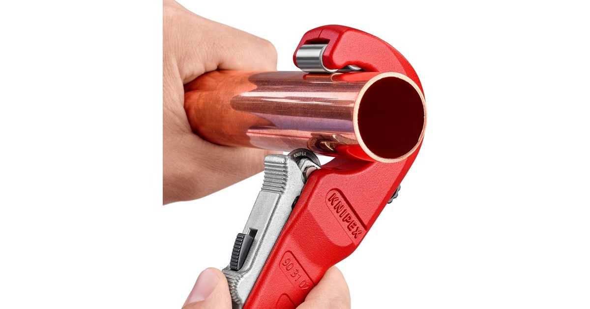 Der 18cm lange KNIPEX TubiX Rohrabschneider schneidet Rohre aus Kupfer, Messing und Edelstahl. Mit nur einer Hand lässt er sich an Rohre von 6 bis 35mm (1/4" - 1.3/8") Durchmesser exakt positionieren und schneidet Wandstärken bis 2mm ohne größeren Kraftaufwand. Die QuickLock-Einhand-Schnellfixierung führt das Werkzeug fest an das Rohr heran, fixiert es und positioniert das Schneidrad präzise an den unterschiedlichen Rohrdurchmessern. Dann wird das Rohr durch Drehung des Werkzeugs geschnitten, wobei mit dem ergonomischen Drehknauf der Abstand zur Schneide kontinuierlich nachgestellt werden kann. Im Kopf versteckt sich außerdem ein praktischer Entgrater, der sich leicht herausschieben oder bei Bedarf auch ganz entnehmen lässt. Das Schneidrad des TubiX ist aus hochwertigem Kugellagerstahl gefertigt, das Metallgehäuse aus leichtem und langlebigem Magnesium. Das nadelgelagerte und abgefederte Schneidrad lässt sich leicht auswechseln, ein Ersatzrad befindet sich bereits im blauen Griffknauf.Art.-Nr.: 1822624
