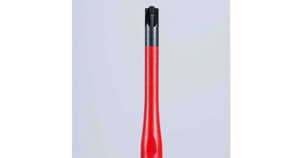 Der VDE-Schraubendreher 98 25 02 SLS von Knipex verfügt über einen ergonomischen isolierten Mehrkomponenten-Griff mit Aufhängeloch und eine Antriebsspitze für PlusMinus-Profilschrauben. Er wird u.a. bei Elektroinstallations-Komponenten wie z. B. Sicherungsautomaten eingesetzt. Der reduzierte Klingenisolationsdurchmesser ermöglicht, auch tiefliegende Feder- und Schraubelemente zu erreichen. Der Schraubendreher ist nach VDE isoliert und geprüft bis 1.000 Volt. Die Klinge ist aus Chrom-Vanadium-Molybdän-Stahl gefertigt und brüniert. Art.-Nr.: 1468986
