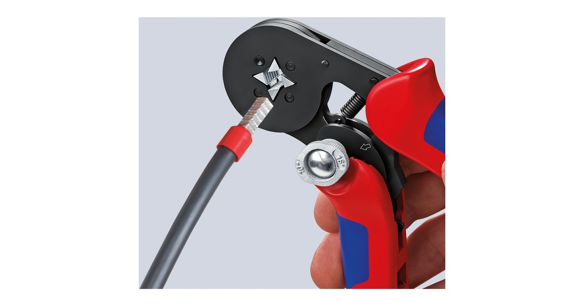 Die selbsteinstellende Crimpzange Knipex 97 53 04 eignet sich zum Verpressen von Aderendhülsen nach DIN 46228 Teil 1 + 4, sie verfügt über eine selbsteinstellende Anpassung auf die gewünschte Ader-Endhülsengröße, passend für alle Twin-Aderendhülsen im Kapazitätsbereich. Sie ermöglicht die Verpressung von 0,08 bis 10mm² und 16mm² in einem Profil mit Hilfe des Wahlhebels zur Einstellung des Crimpbereichs 0,08 bis 10 oder 16mm². Die gleichbleibend hohe Crimpqualität wird durch eine Zwangssperre (entriegelbar) und werkseitig präzise eingestellten (kalibrierten) Crimpdruck gewährleistet. Zusätzlich überzeugt sie mit hohem Bedienungskomfort dank der Kraftverstärkung durch Kniehebel für ermüdungsarmes Arbeiten, die handliche Bauform und geringes Gewicht. Die kleine Crimpzange 97 53 04 bietet große Vorteile für den Anwender: Automatische Selbsteinstellung auf die verwendete Ader-Endhülse entlastet den Fachmann und bietet sicheres, zuverlässiges und schnelles Vercrimpen. Die Griffe sind dank Mehrkomponenten-Hüllen besonders rutschsicher und komfortabel.Art.-Nr.: 1265837