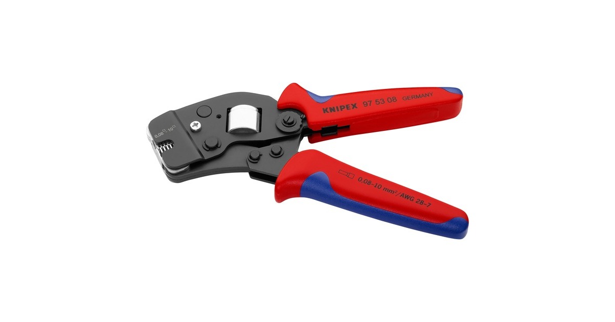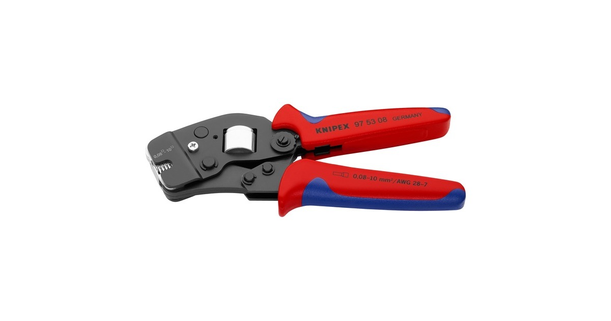Die selbsteinstellende Crimpzange 97 53 08 von Knipex eignet sich zum Verpressen von Aderendhülsen nach DIN 46228 Teil 1 + 4, sie verfügt über eine selbsteinstellende Anpassung auf die gewünschte Ader-Endhülsengröße, passend für alle Twin-Aderendhülsen bis 2 x 4mm² oder 2 x AWG 12. Sie ermöglicht die Verpressung von 0,08 bis 10mm² in einem Profil, die selbsteinstellende Anpassung auf die gewünschte Aderendhülsengröße vermeidet Crimpfehler durch Verwendung eines falschen Crimpeinsatzes. Die gleichbleibend hohe Crimpqualität wird durch eine Zwangssperre (entriegelbar) und werkseitig präzise eingestellten (kalibrierten) Crimpdruck gewährleistet. Zusätzlich überzeugt sie mit hohem Bedienungskomfort dank der Kraftverstärkung durch Kniehebel für ermüdungsarmes Arbeiten, die handliche Bauform und geringes Gewicht. Die kleine Crimpzange 97 53 08 entlastet den Fachmann und bietet sicheres, zuverlässiges und schnelles Vercrimpen. Die Griffe sind dank Mehrkomponenten-Hüllen besonders rutschsicher und komfortabel.Art.-Nr.: 1867142