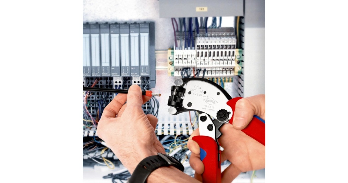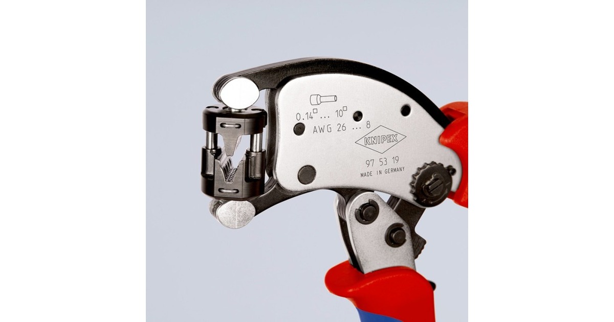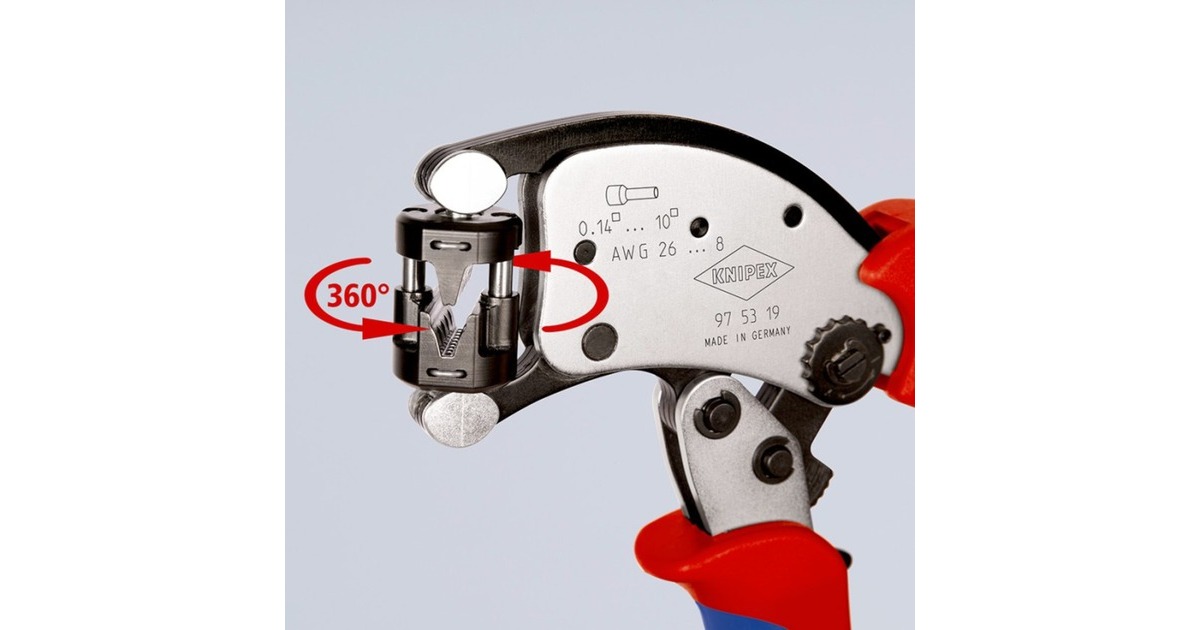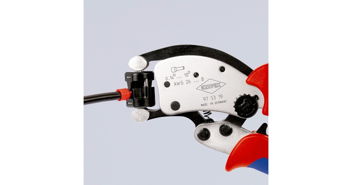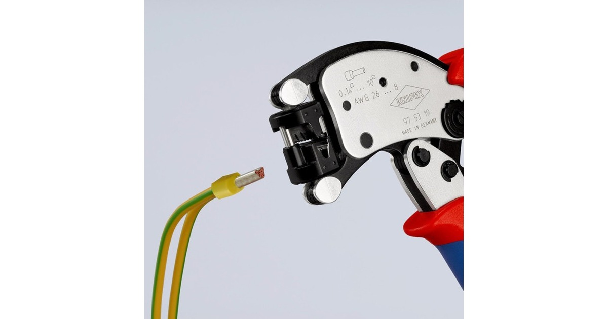 Die selbsteinstellende Crimpzange Twistor T von KNIPEX eignet sich zum Verpressen von Aderendhülsen von 0,14 bis 10mm² und von Twin-Aderendhülsen bis 2x 6mm². Die gleichbleibend hohe Crimpqualität wird durch eine Zwangssperre (entriegelbar) und werkseitig präzise eingestellten Crimpdruck gewährleistet. Zusätzlich überzeugt sie mit hohem Bedienungskomfort dank der Kraftverstärkung durch Kniehebel für ermüdungsarmes Arbeiten, die handliche Bauform und geringes Gewicht. Die Crimpzange Twistor T bietet große Vorteile für den Anwender: Automatische Selbsteinstellung auf die verwendete Ader-Endhülse entlastet den Fachmann und bietet sicheres, zuverlässiges und schnelles Vercrimpen. Der Crimpkopf mit quadratischem Crimpprofil ist um 360° frei drehbar und bietet 8 Rastpositionen. Die Verbinder können aus nahezu jeder Position in den drehbaren Crimpkopf eingeführt werden, und überlange Aderendhülsen können einfach nachgeschoben werden.Art.-Nr.: 1844665
